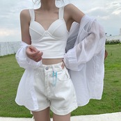 色:ショールホワイトシャツ取り外し可能,胸パッドホワイトベスト,ホワイトデニムショートパンツSサイズ,ホワイトデニムショートパンツサイズM,ホワイトデニムショートパンツサイズL