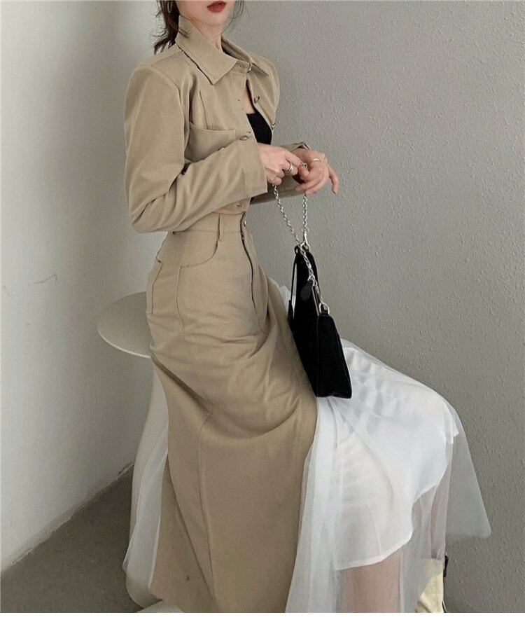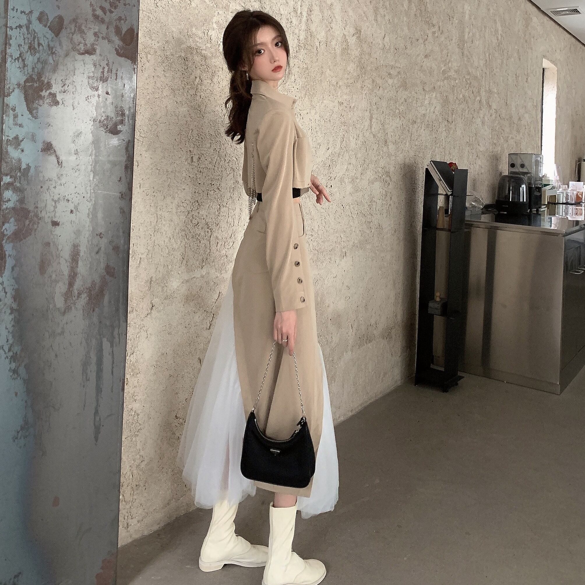 気質揚げストリートスーツ女性春新作スーツショートジャケットデザイン不規則ステッチメッシュスカート スプリング 春物 コーデ marchs6736711452188
