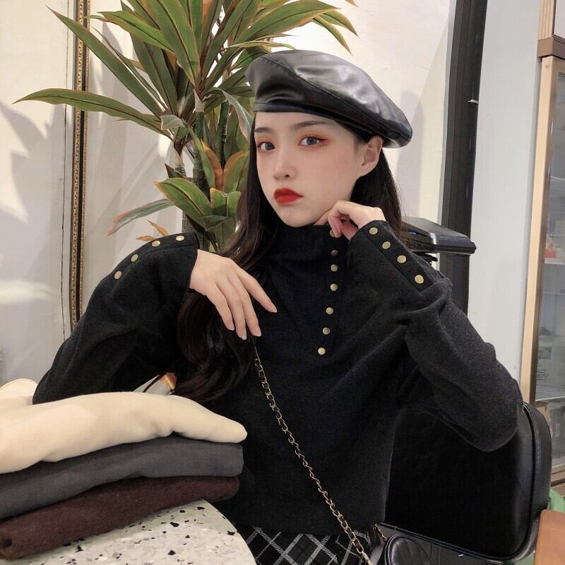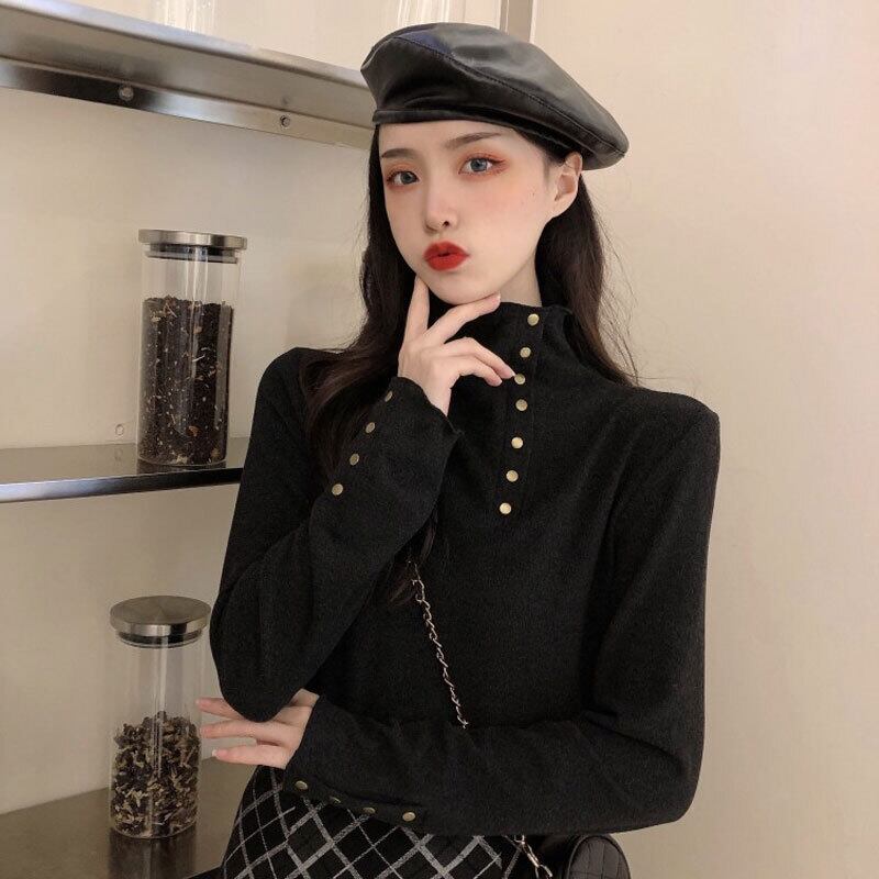 長袖ニットボトミングシャツ2021年秋冬ウィメンズニューデザインセンスウエスタンスタイルプラスベルベット厚手のオールマッチハイネックトップス ロング ウィンター 冬物 コーデ marchs6782224466733
