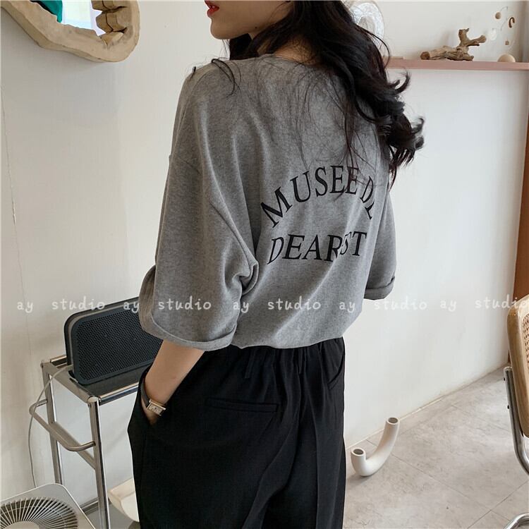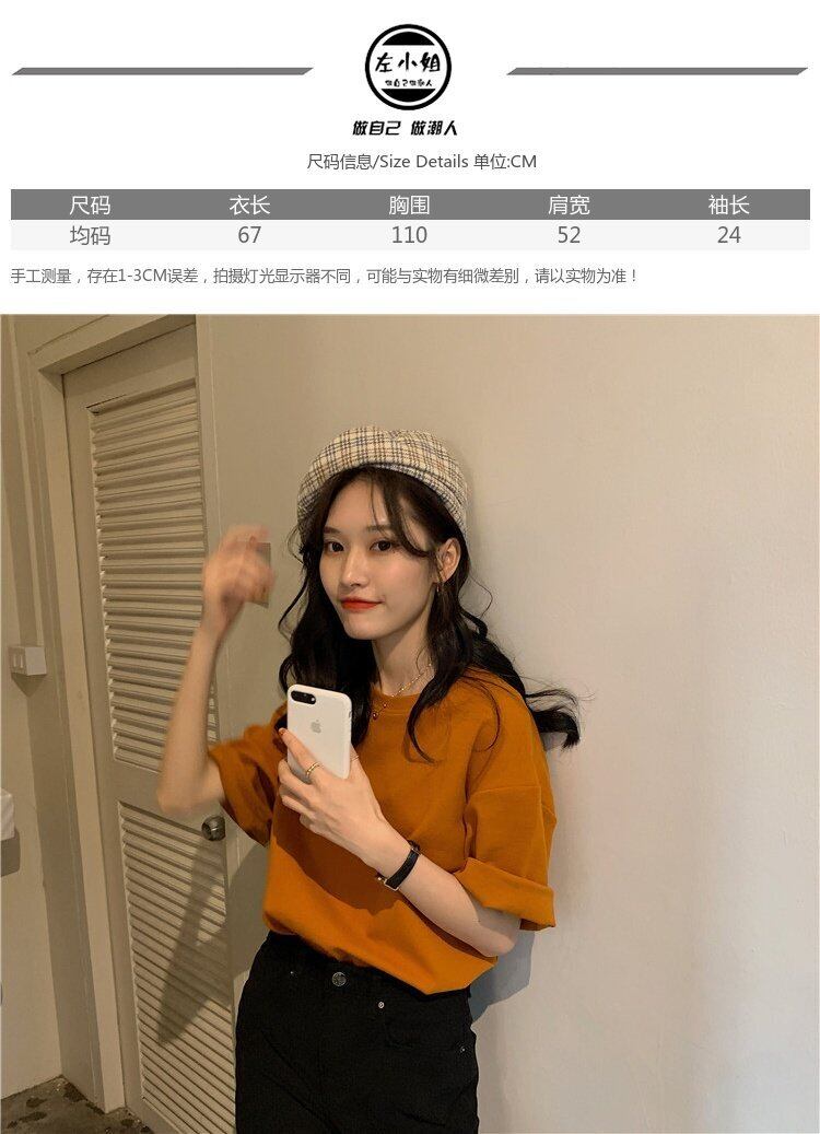 黄色の半袖Tシャツ女性2021年夏新しい韓国文字印刷ルーズカジュアルラウンドネックトップ 夏物 Oネック 韓国ファッション コーデ marchs6737013626175