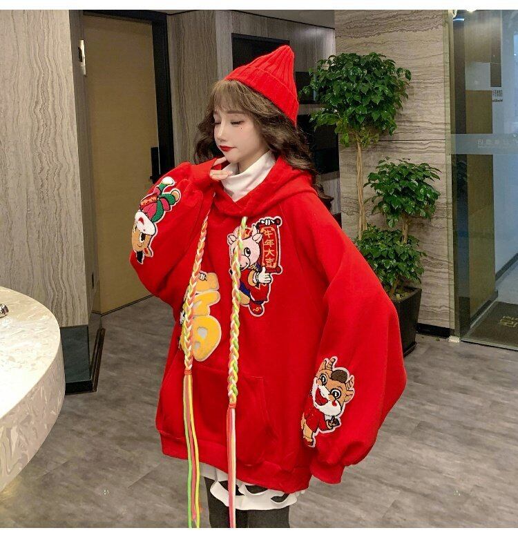 爆発的な出生の牛の年の赤いセーターの女性のファッションとベルベットの厚い冬2021年の新しいコートの新年の服 レッド ウィンター 冬物 コーデ marchs6740739339649