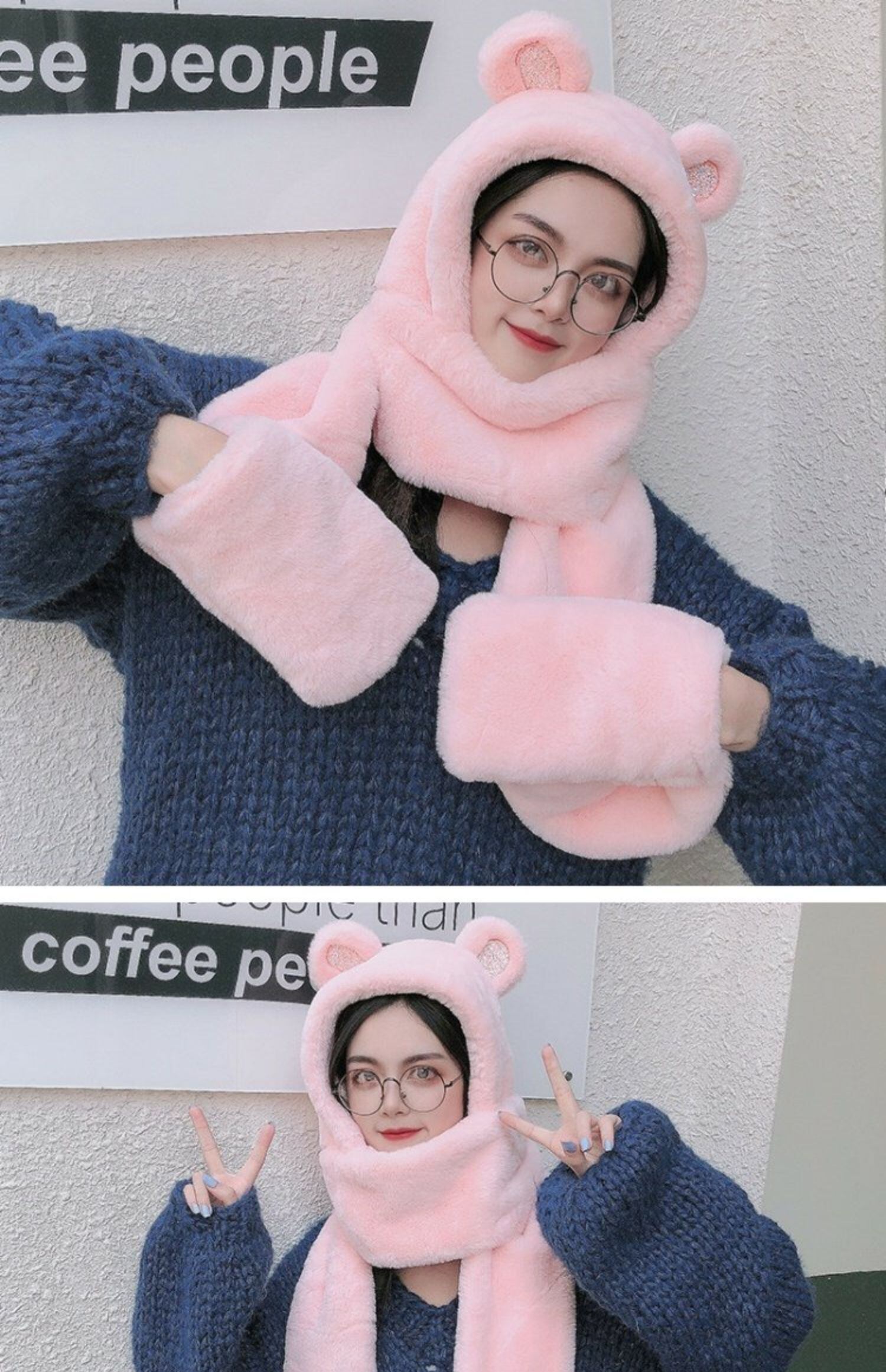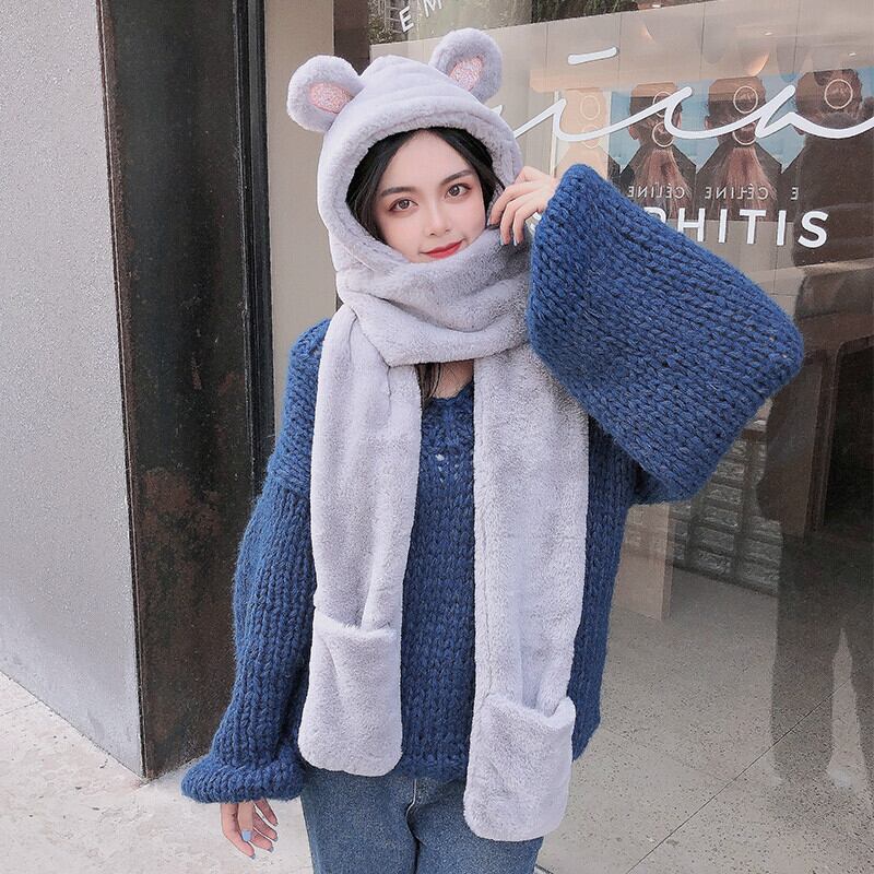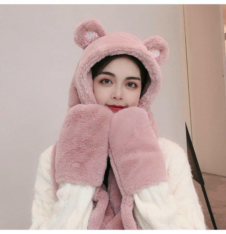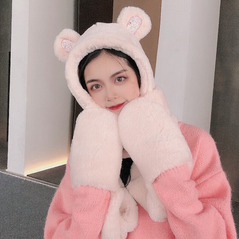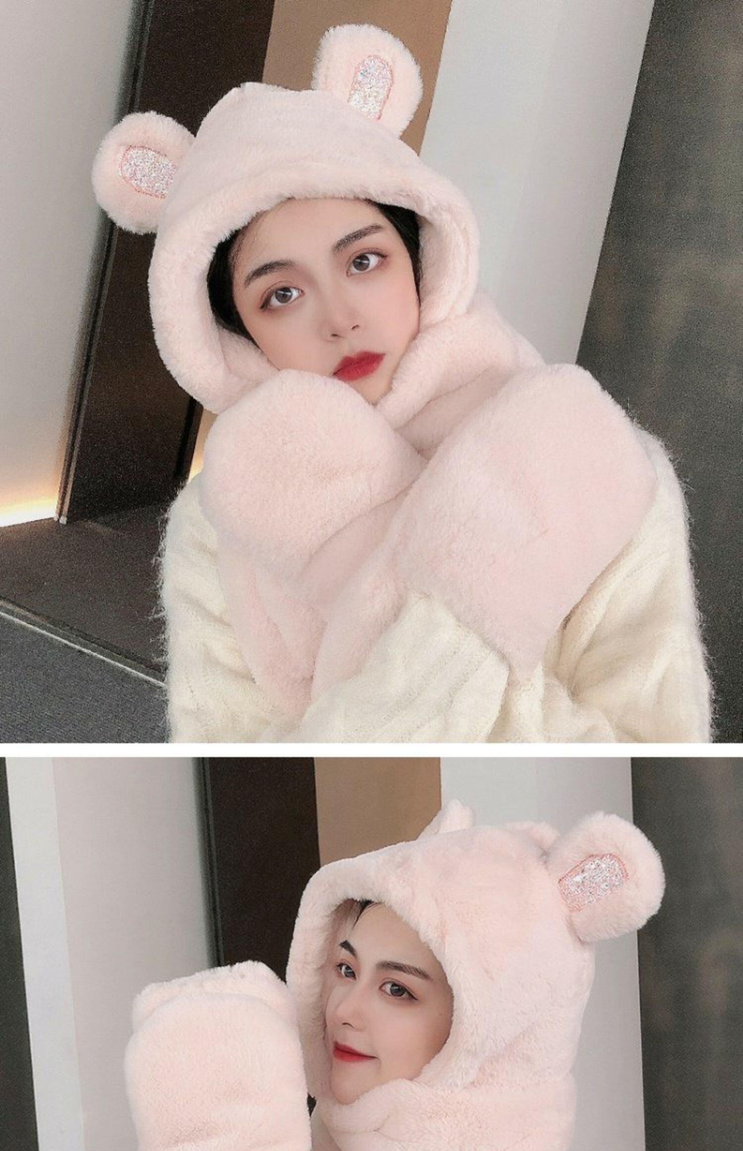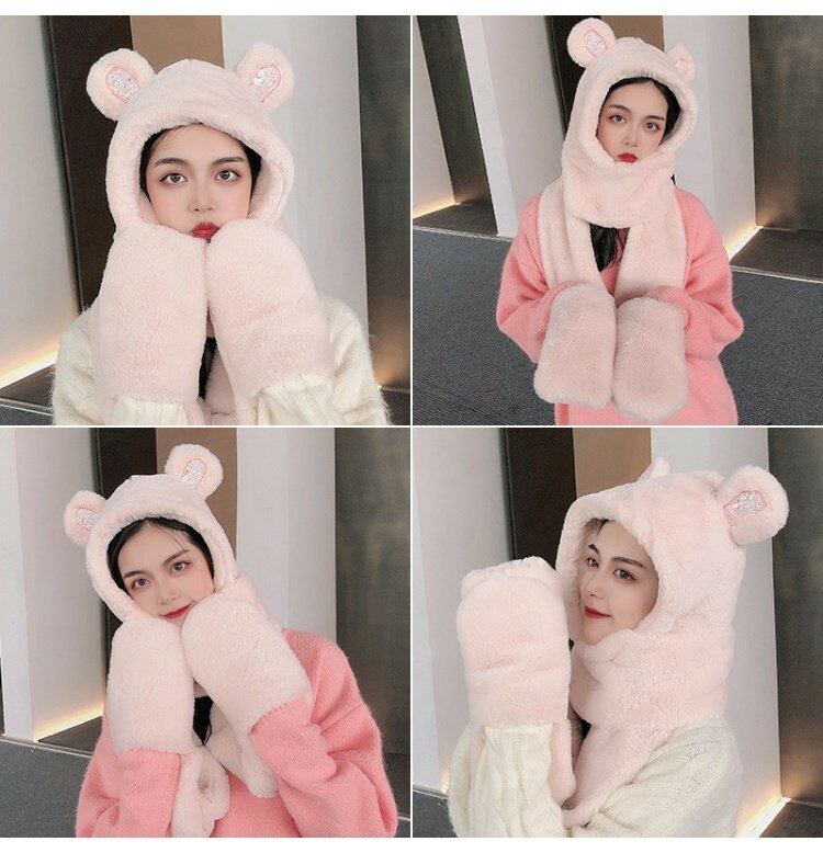 フード付きスカーフと手袋スリーピーススーツぬいぐるみかわいい帽子よだれかけフード付き冬の学生 大人ガーリー スウィート キュート カジュアル ウィンター 冬物 コーデ marchs6742225022274