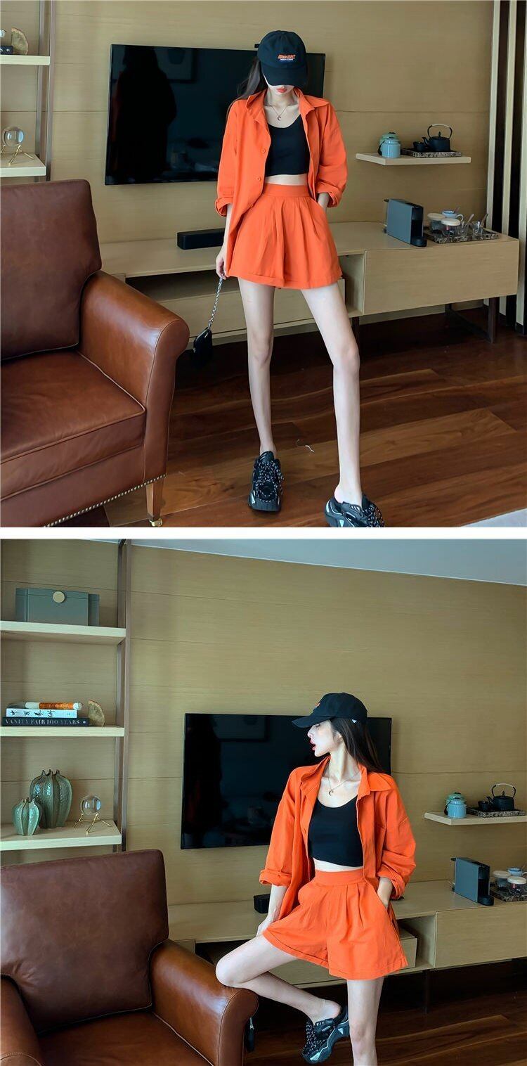 色:白いコート,オレンジコート,ホワイトショーツ,オレンジのショートパンツ