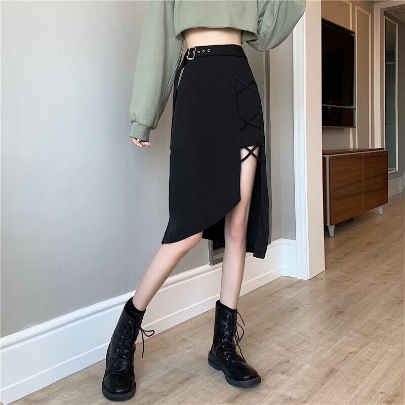 スカート レディース夏服サイドスリットブラックウェスト 夏物 ウエスト ミドル丈 コーデ marchs67859374389
