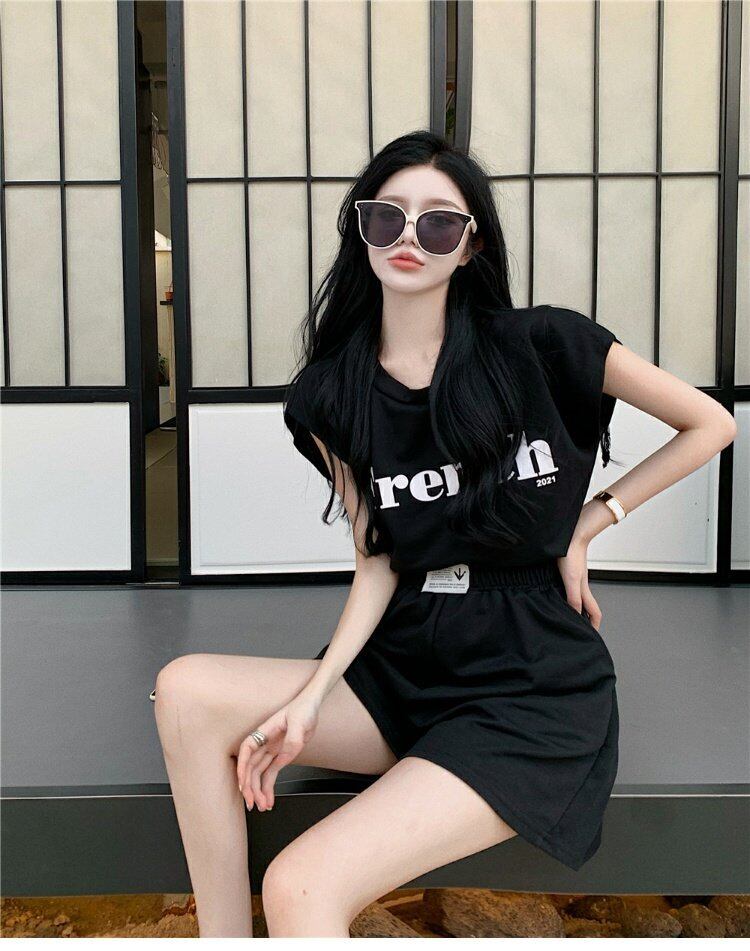 夏服スタイルレディーススタンダードノースリーブトップス ショーツ カジュアル レトロ 夏物 コーデ marchs679241991449