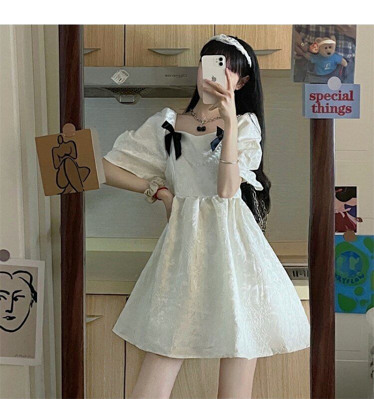 スカート レディース夏服スタンダードジャカードウェストリボンスリーブワンピース レトロ 大人ガーリー スウィート キュート カジュアル 夏物 ウエスト コーデ marchs6740853176584