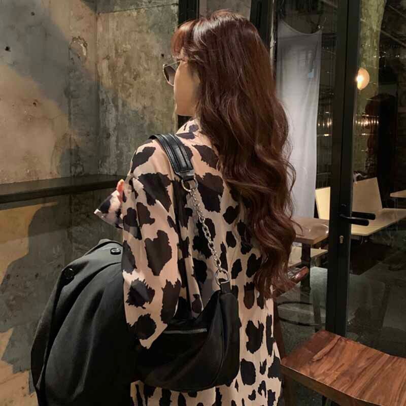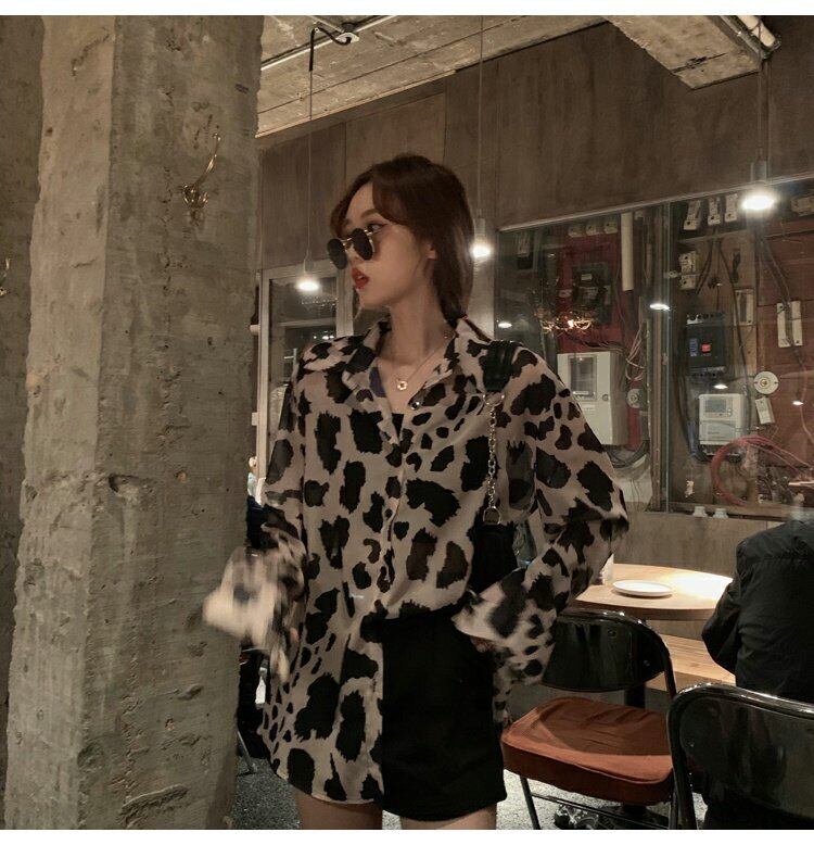 スタンダードレオパードシャツ スプリングレディーストレンドルーズ薄手 ロング レッド レトロ 春物 長袖 コーデ marchs6762036751871