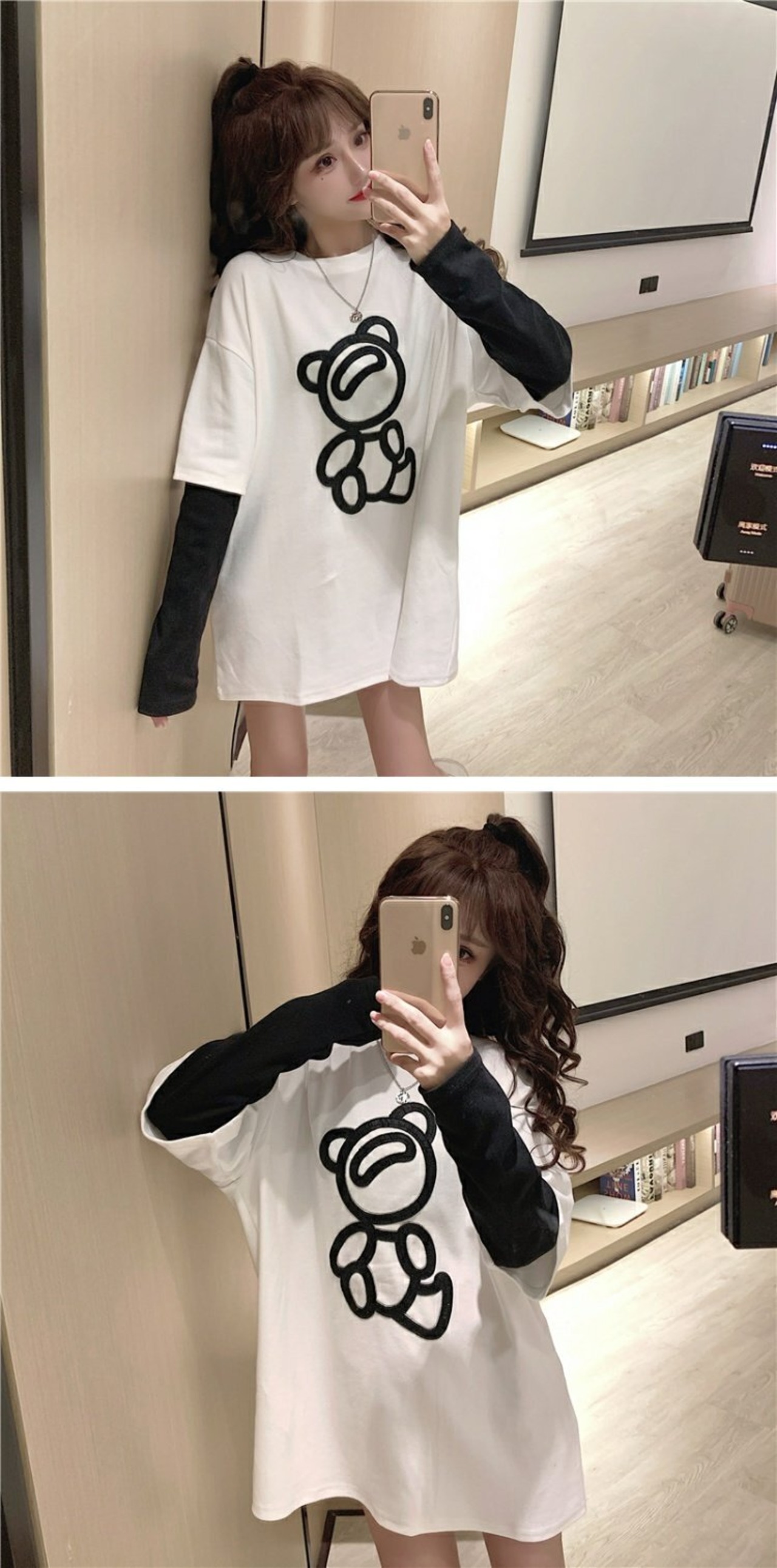 スプリングプリント柄Tシャツシャツ レディーストレンドルーズゆったり ロング 春物 長袖 ミドル丈 コーデ marchs6741472613372
