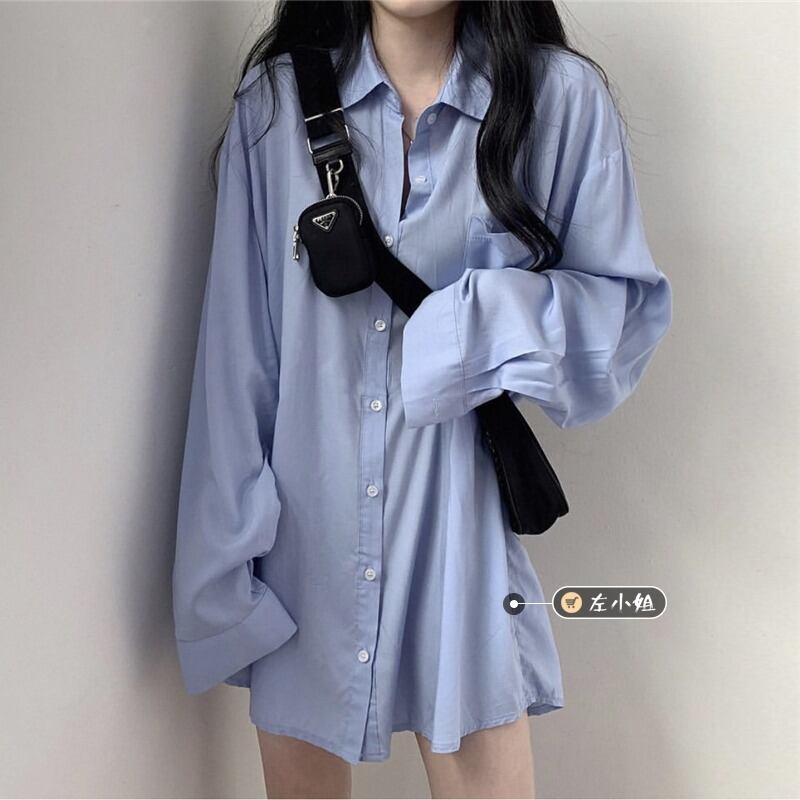スタイルシャツ レディーススプリング韓国ファッションルーズカジュアルトップス ロング 春物 長袖 ミドル丈 コーデ marchs6749388131850