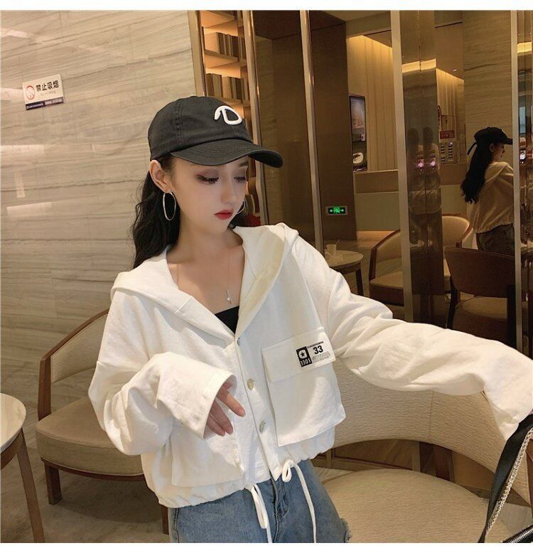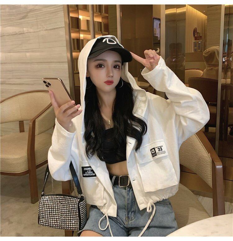 ホワイトショートコート スプリング秋物韓国ファッショントップス 春物 オータム スタイル コーデ marchs6718382566997