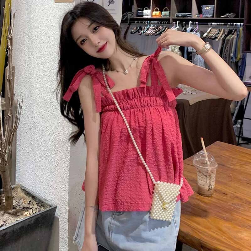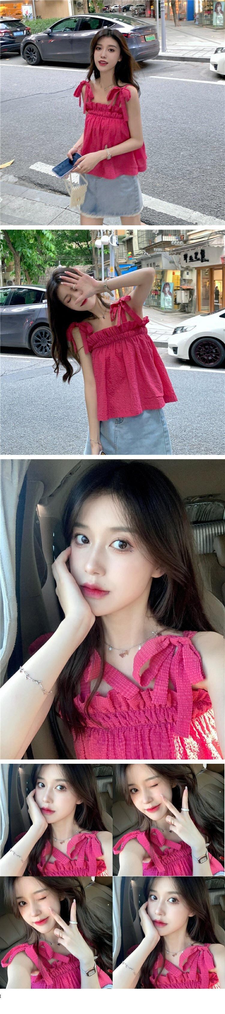 プリーツリボンノースリーブアウター夏服 大人ガーリー スウィート キュート カジュアル 夏物 コーデ marchs6735357478833