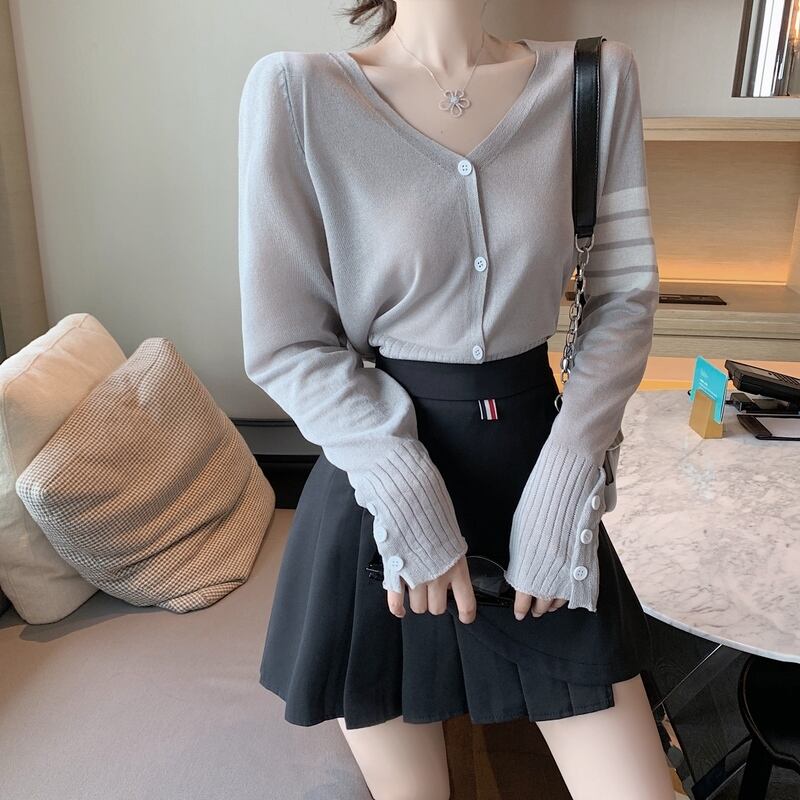レディースVネックニットカーディガンハイウェストプリーツスカート 夏服 夏物 シルク ウエスト コーデ marchs6756804270666