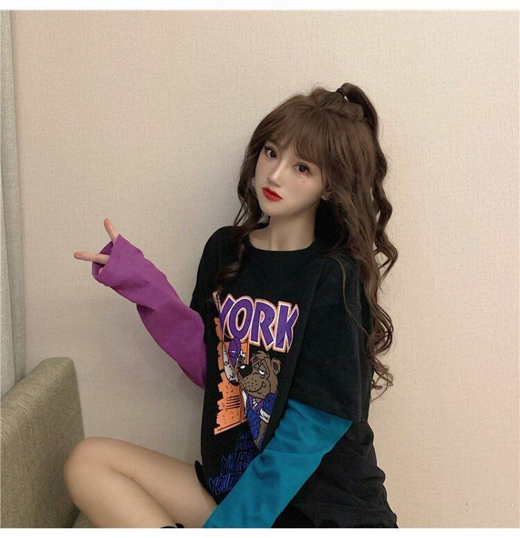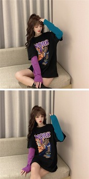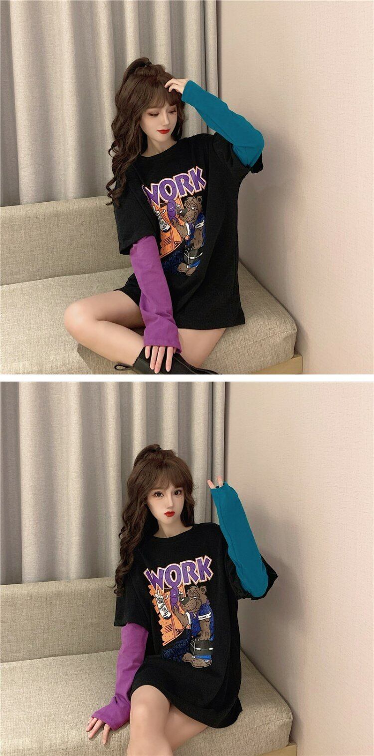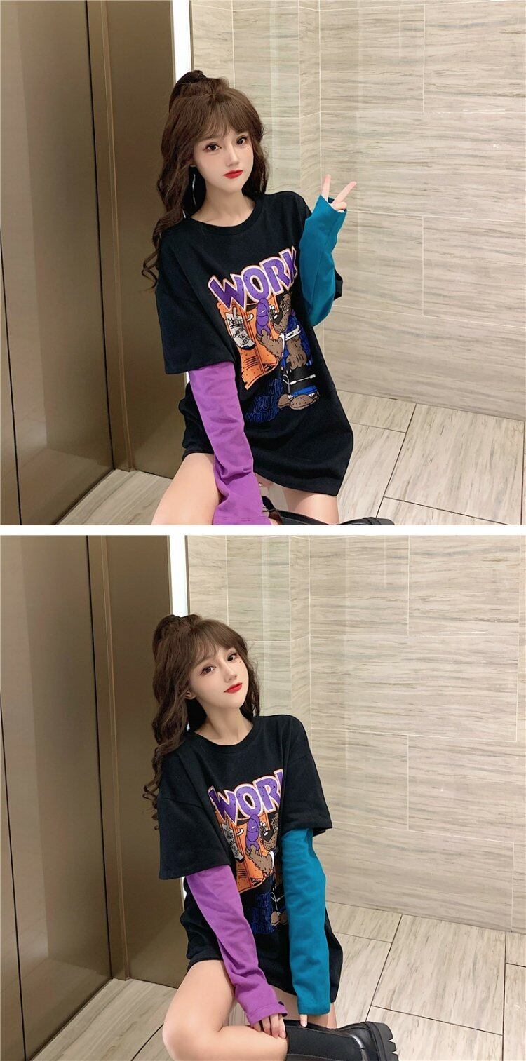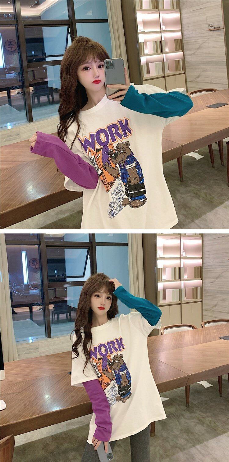 Tシャツ秋物スプリングルーズトップス トレンド ロング ストリート 春物 オータム ステッチ 長袖 コーデ marchs6747986875460