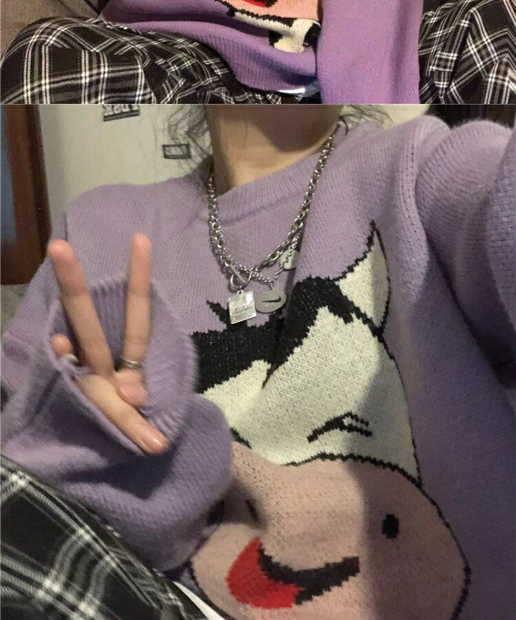 スプリング韓国ファッションブルールーズニットセーター 大人ガーリー スウィート キュート カジュアル 春物 スタイル コーデ marchs6713628852362