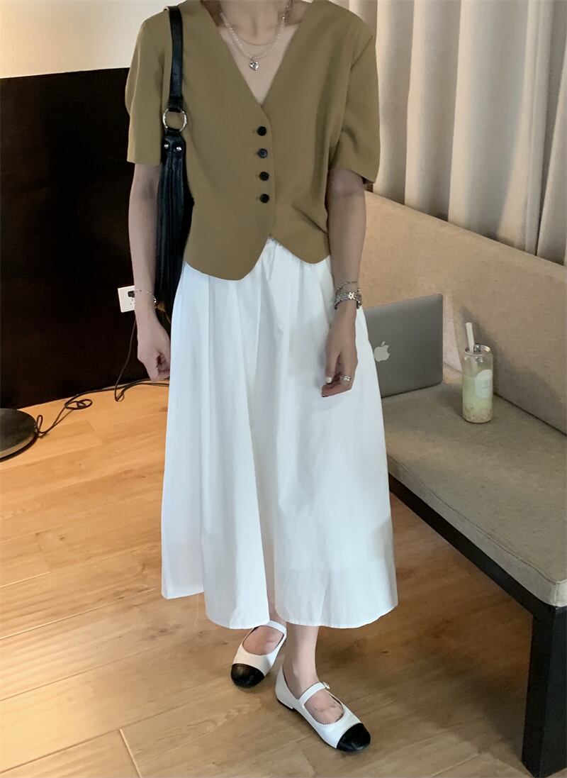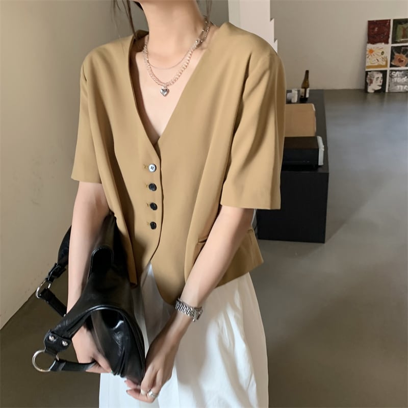 夏服スタンダードVネックショートシャツ スタイル薄手トップス レトロ 夏物 コーデ marchs6711001343562