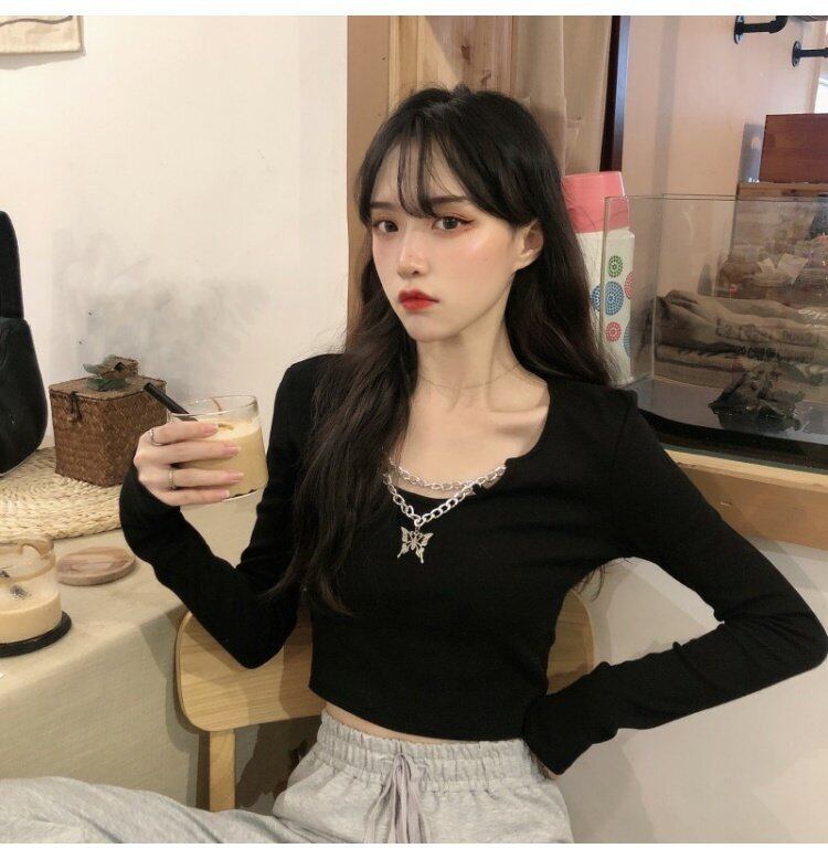 ブラックゆったりスプリング秋物ショート ロング ブラウス 春物 オータム Tシャツ 長袖 コーデ marchs6734528380840