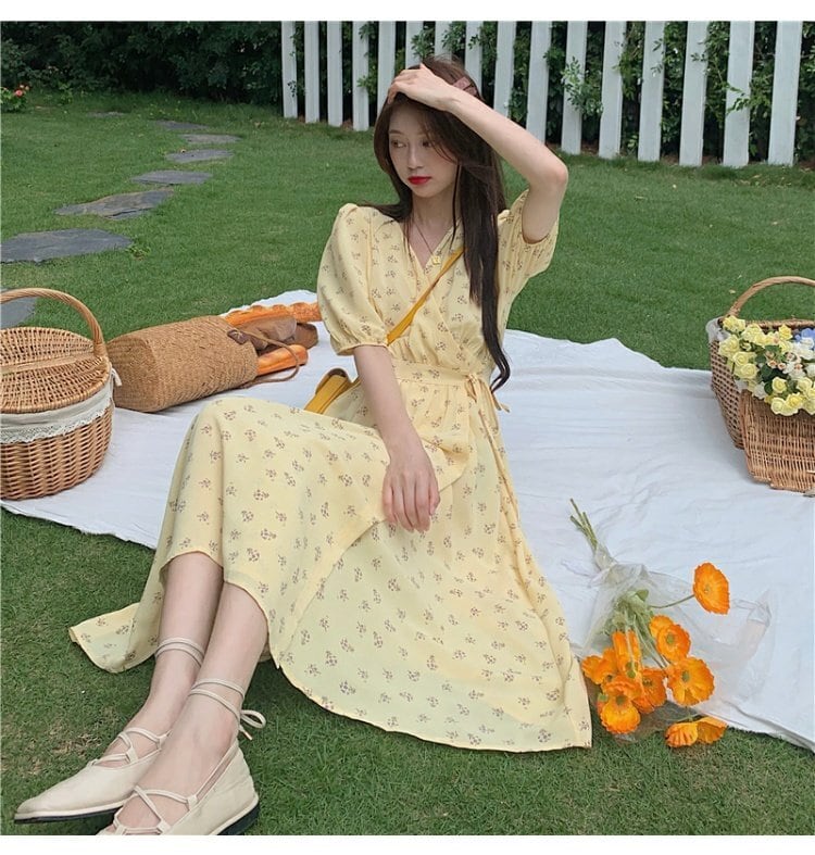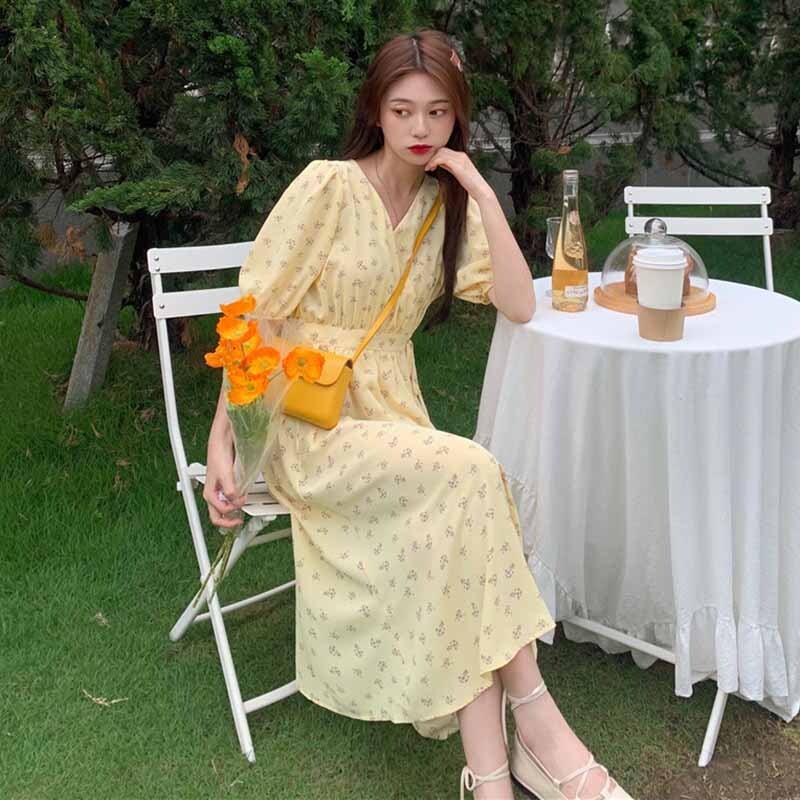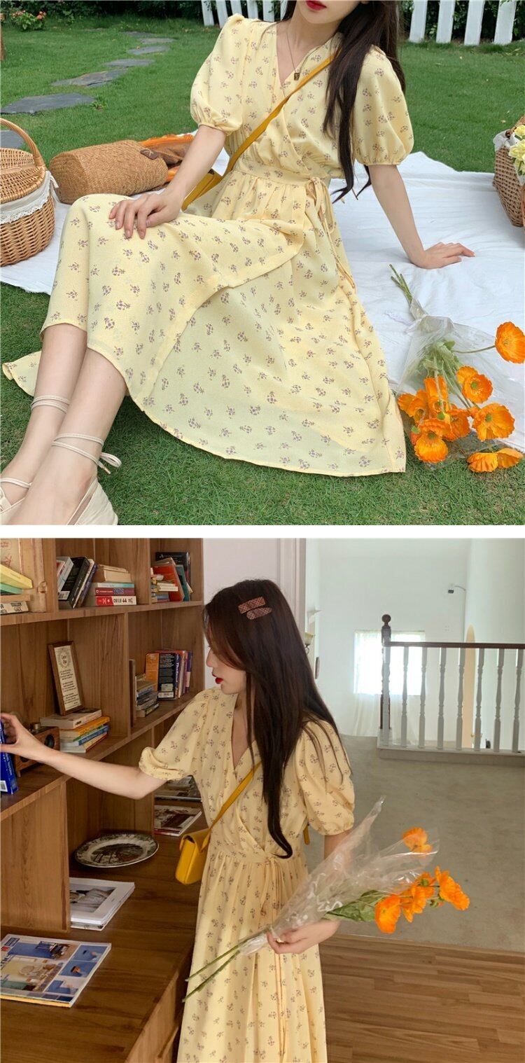 夏服韓国ファッションスタンダードフローラルスカート スタイルワンピースレディース レトロ 大人ガーリー スウィート キュート カジュアル 夏物 花柄 コーデ marchs6737974772790