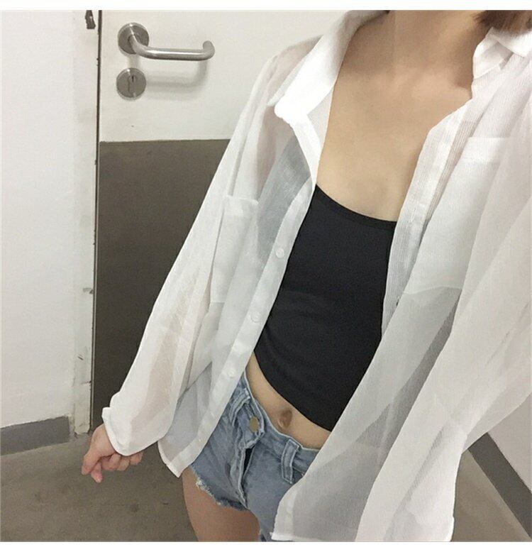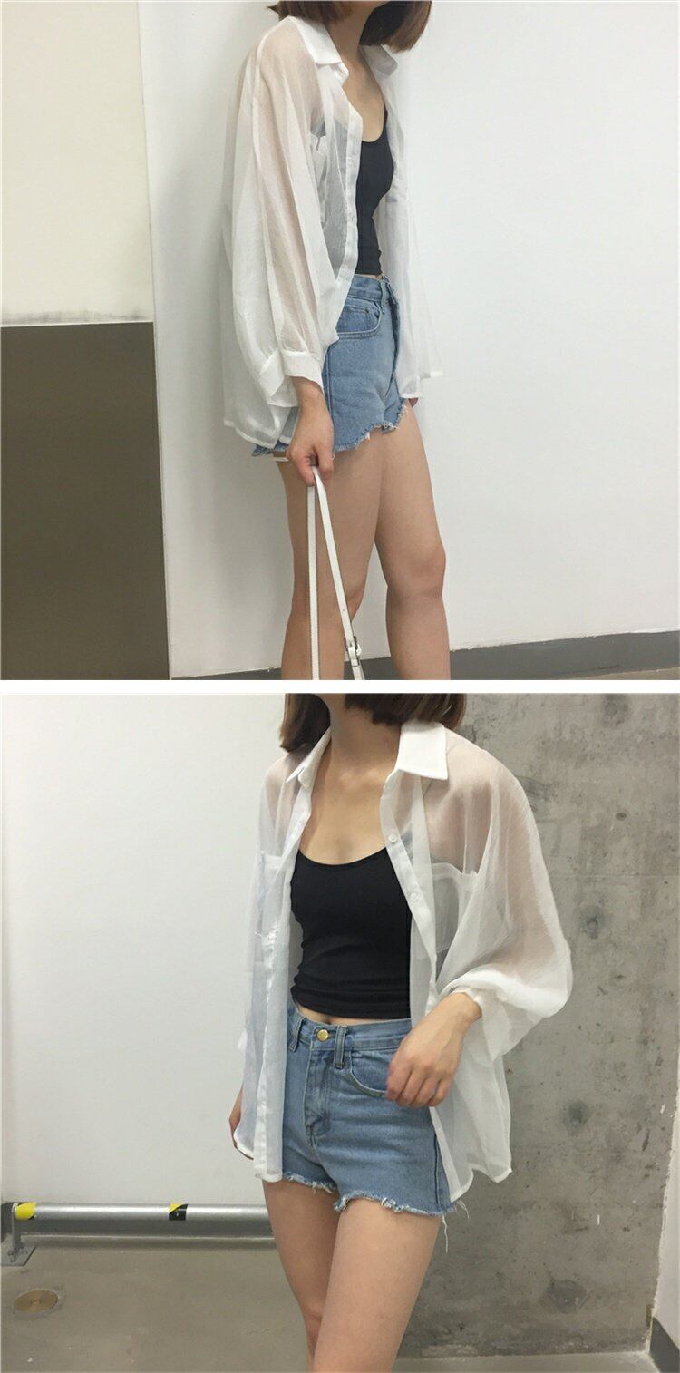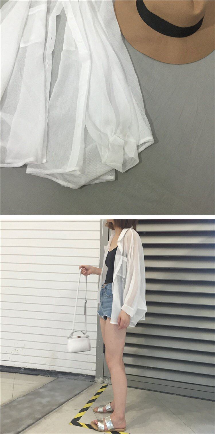 薄手シフォンシャツ ジャケット レディース夏服韓国ファッションルーズホワイトカーディガン ロング 夏物 長袖 コーデ marchs6746067338805