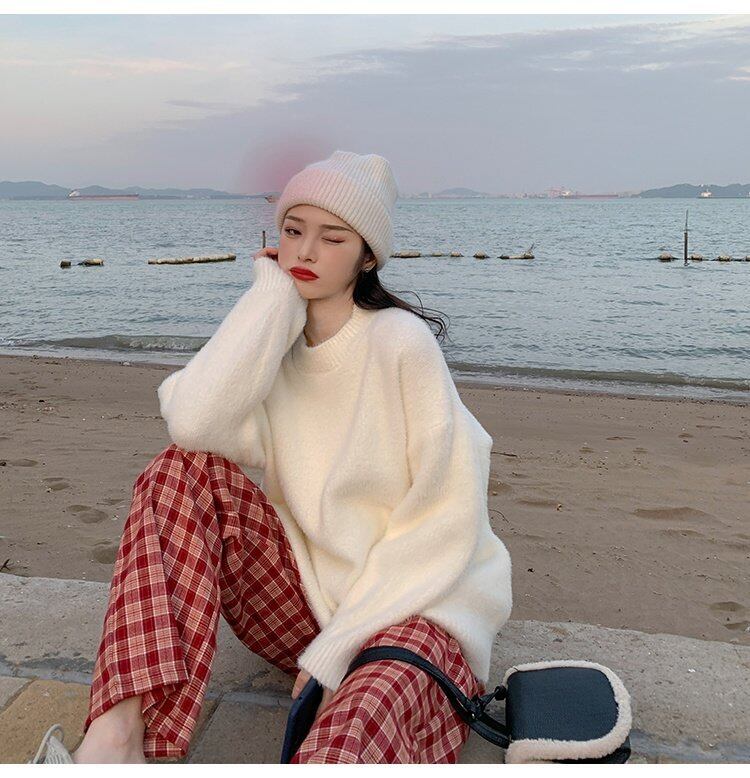 ホワイトセーター レディースルーズウィンターラウンドネックゆったりプルオーバー シャツ 冬物 Oネック コーデ marchs6775567803795
