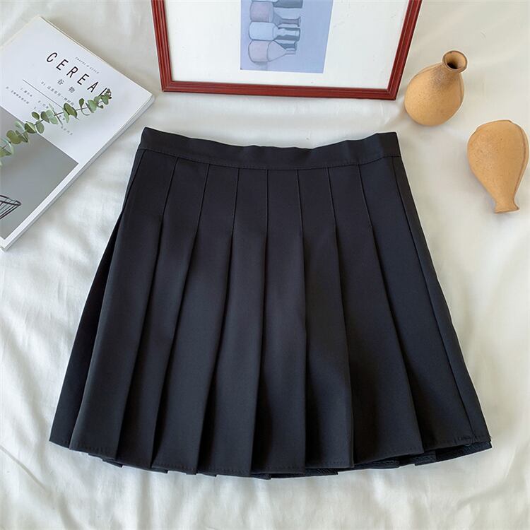 夏服スタイル韓国ファッションベーシックブラックスカート ハイウェストウェストプリーツ 夏物 ウエスト コーデ marchs6734441126781