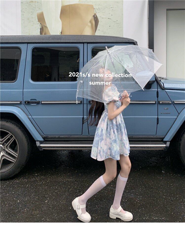 ワンピースウェスト薄手スリーブAラインスカート 夏服スタイル 夏物 ウエスト コーデ marchs6780324990696