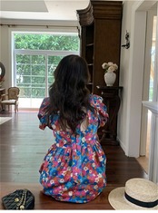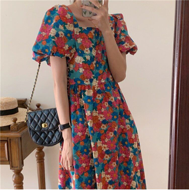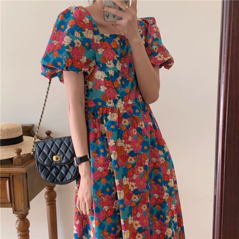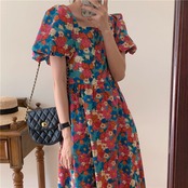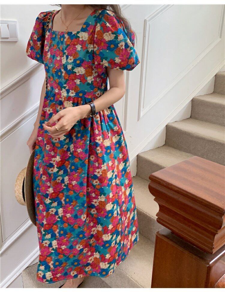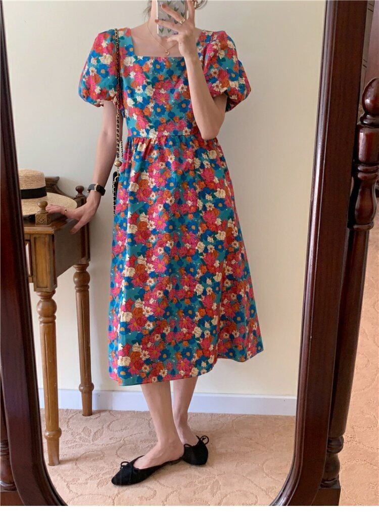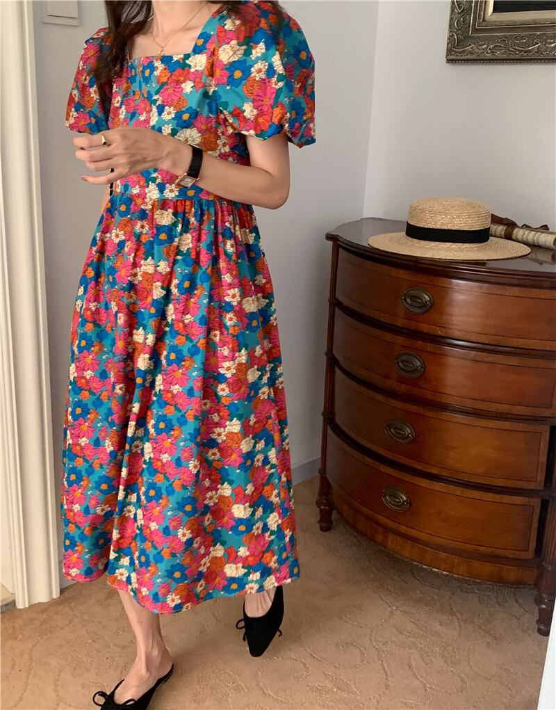 スタンダードスリーブレースフローラルワンピース夏服スタイルロングスカート レトロ 夏物 花柄 コーデ marchs6751278678611