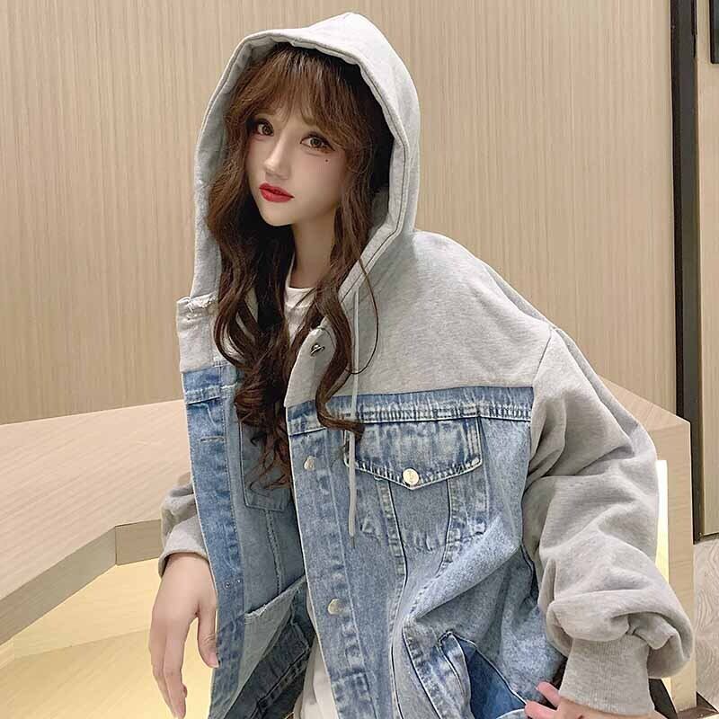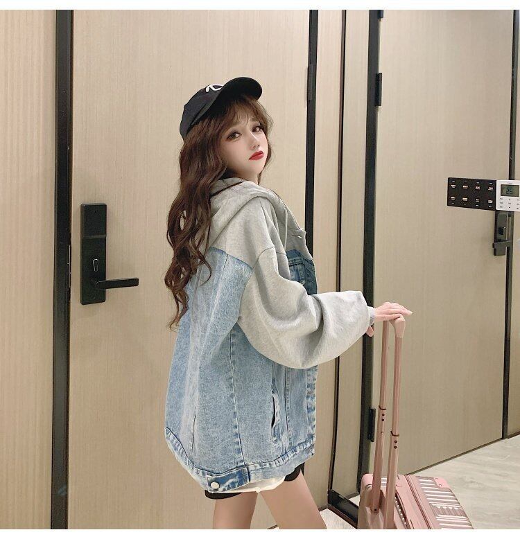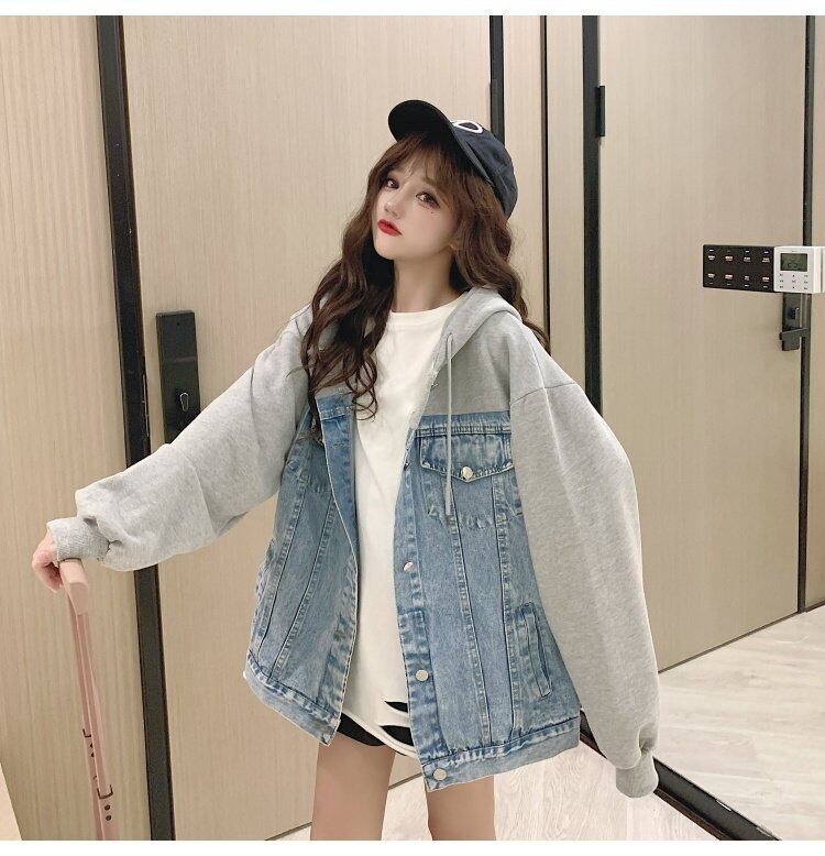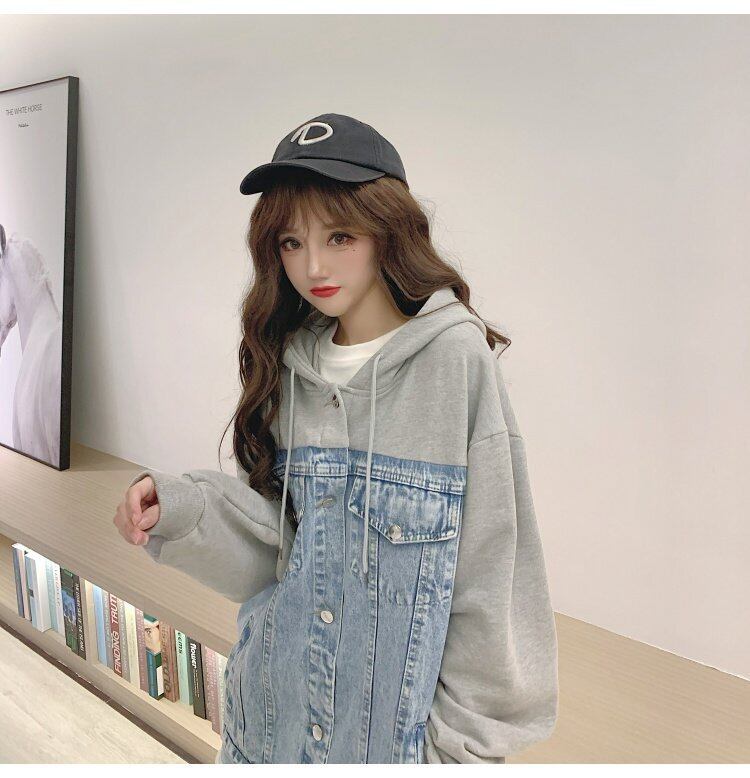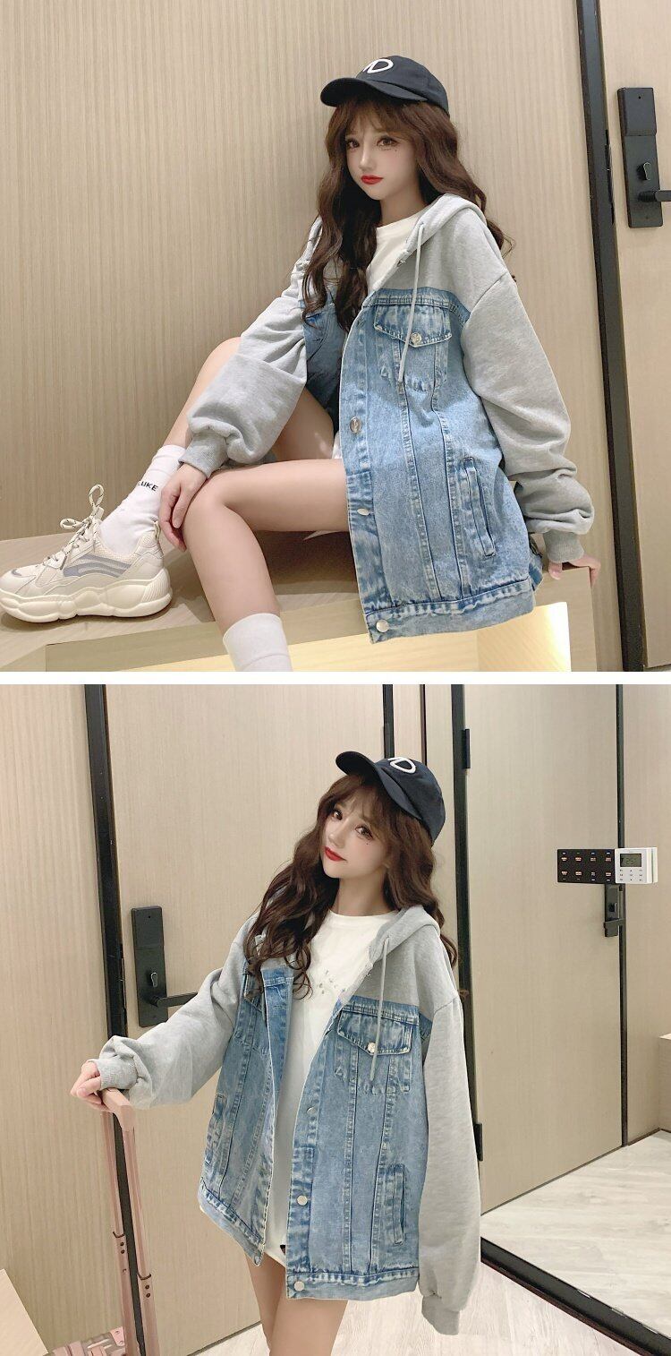 スプリング韓国ファッションセーター ジャケット ルーズフードトップス ロング 春物 ステッチ 長袖 コーデ marchs6783536688573