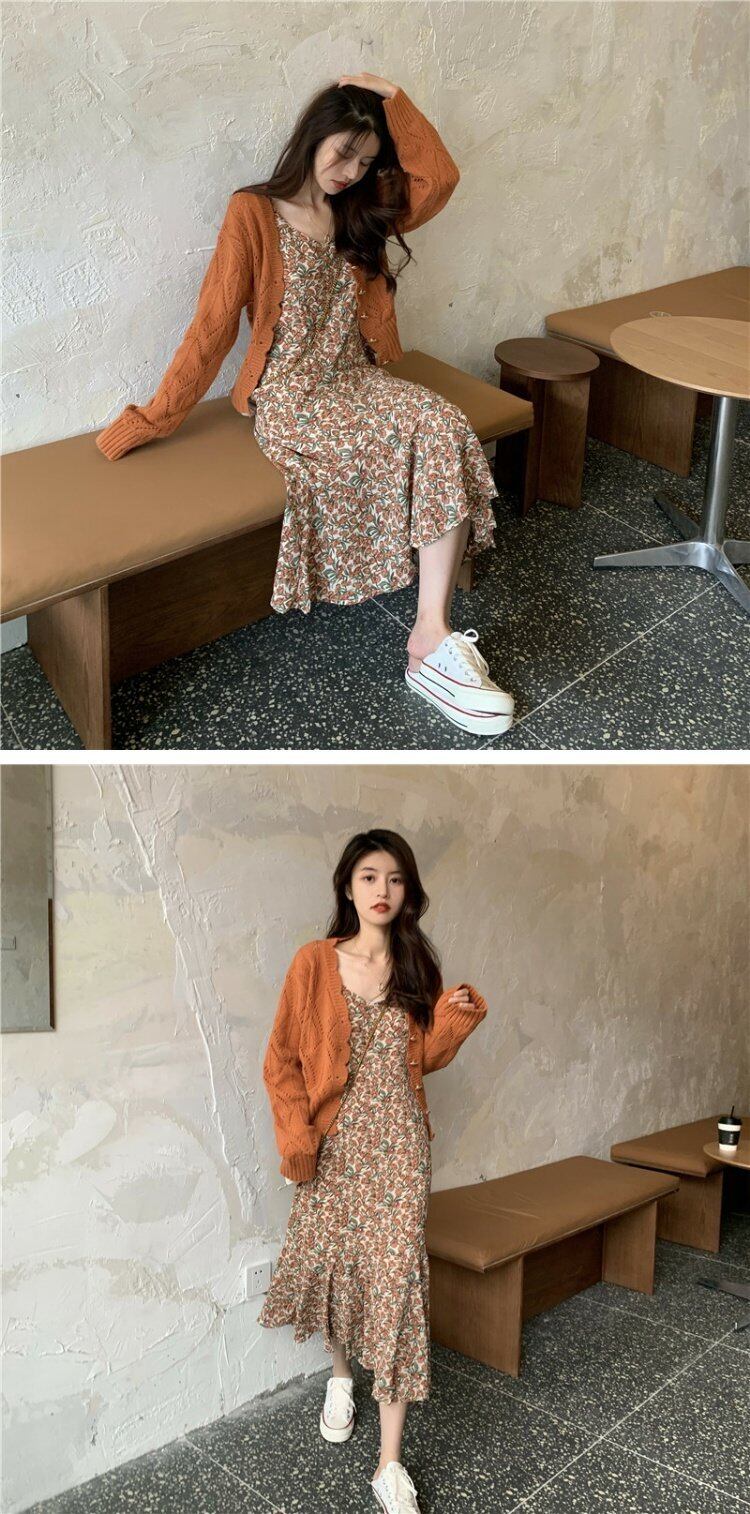 レディーススプリングフローラルワンピースセーター コート 春物 花柄 コーデ marchs678207817569