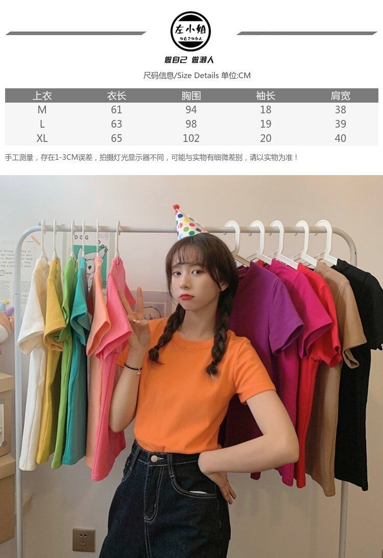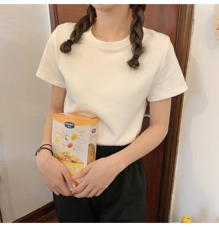 ホワイトショートTシャツレディース韓国ファッションスリム薄手ゆったりラウンドネックトップス トレンド夏服ワンピース 夏物 Oネック スタイル コーデ marchs6778713995229
