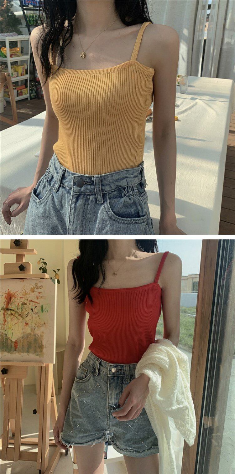 夏服韓国ファッションスリムニットシャツ レディースグレー 夏物 スタイル コーデ marchs6753088721950