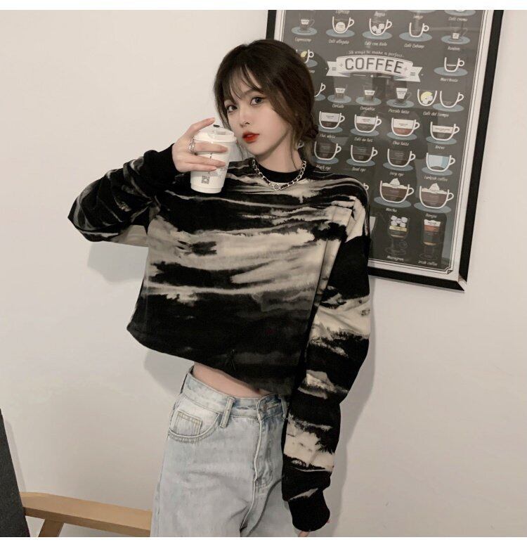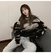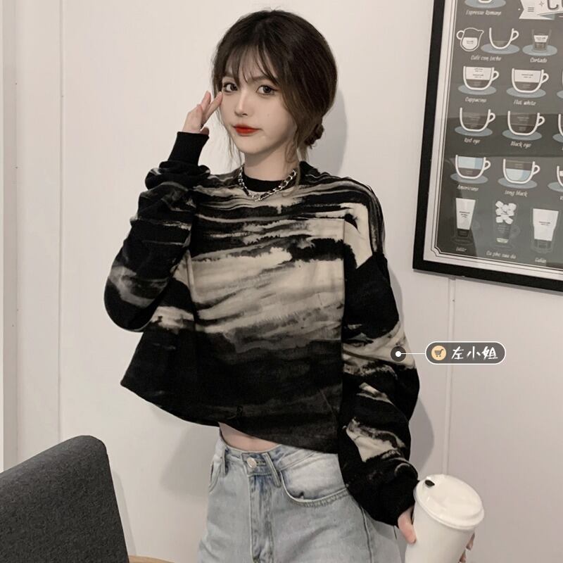 スプリングスタンダードブラックルーズ薄手セーター ショートトップス トレンド ロング レトロ 春物 長袖 コーデ marchs6736627283589