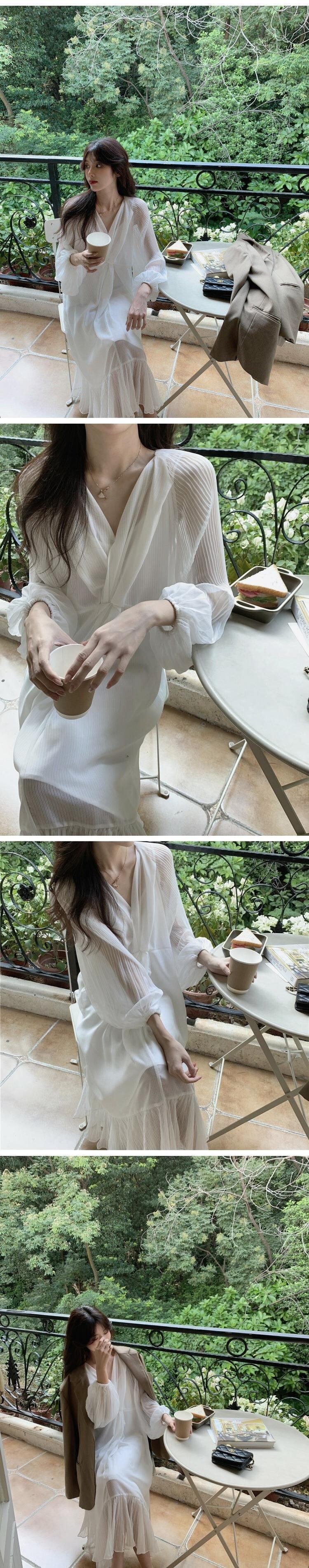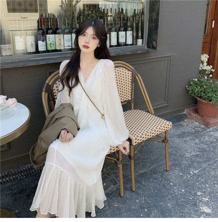 夏服プリーツワンピース ランタンスリーブ 夏物 コーデ marchs6721899880867