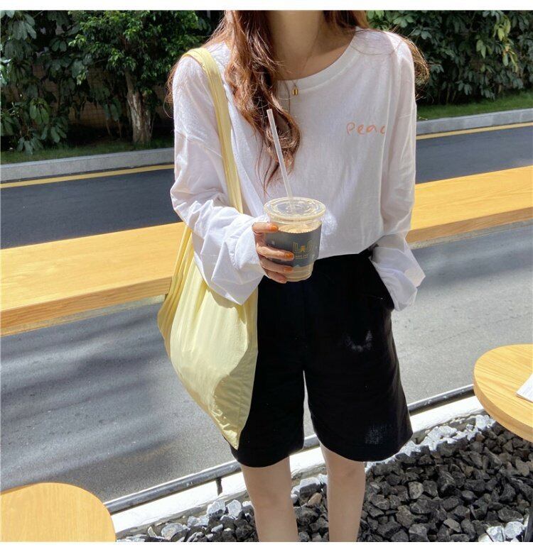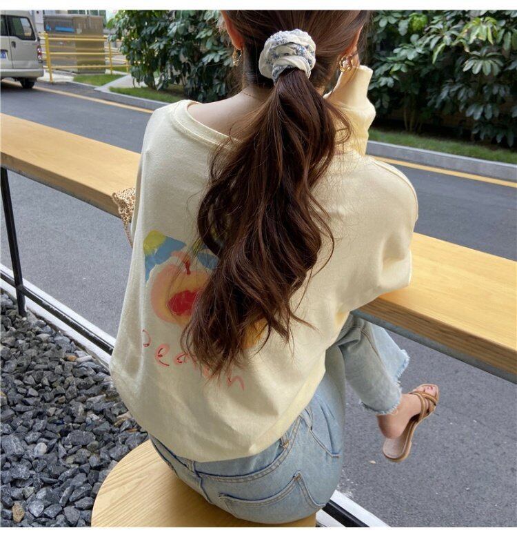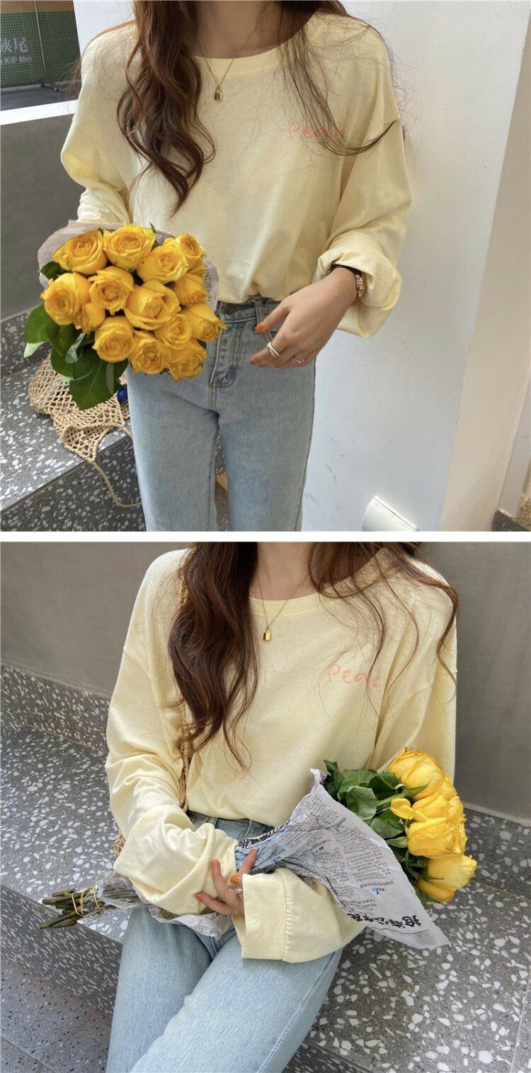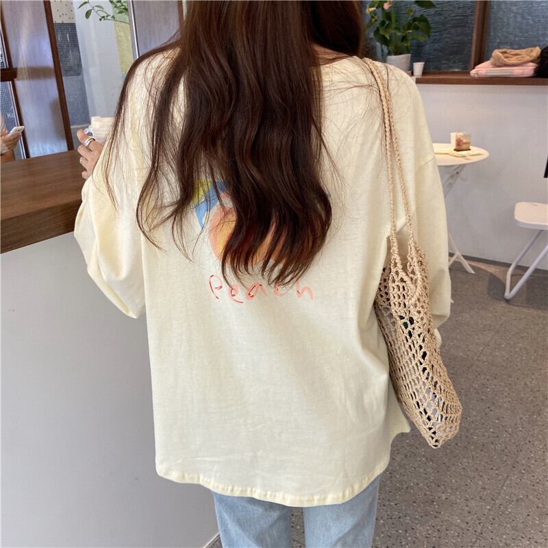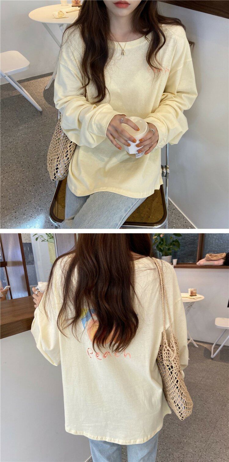 ルーズホワイトTシャツシャツ ゆったりトップス スプリング韓国ファッショントレンドプリント ロング 春物 長袖 コーデ marchs6739383277710