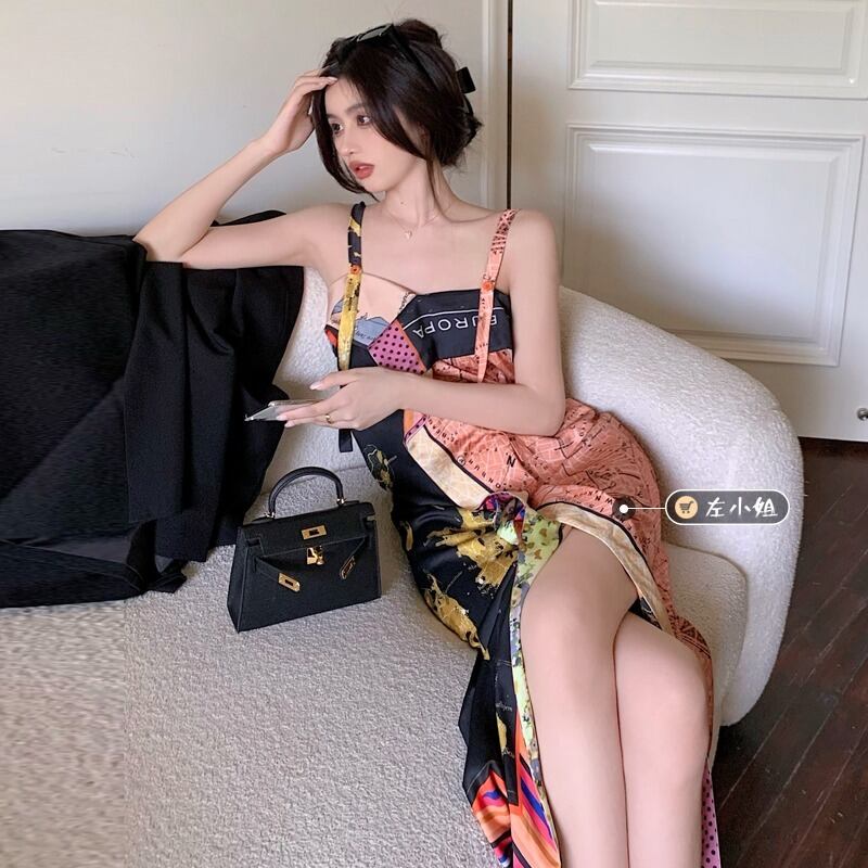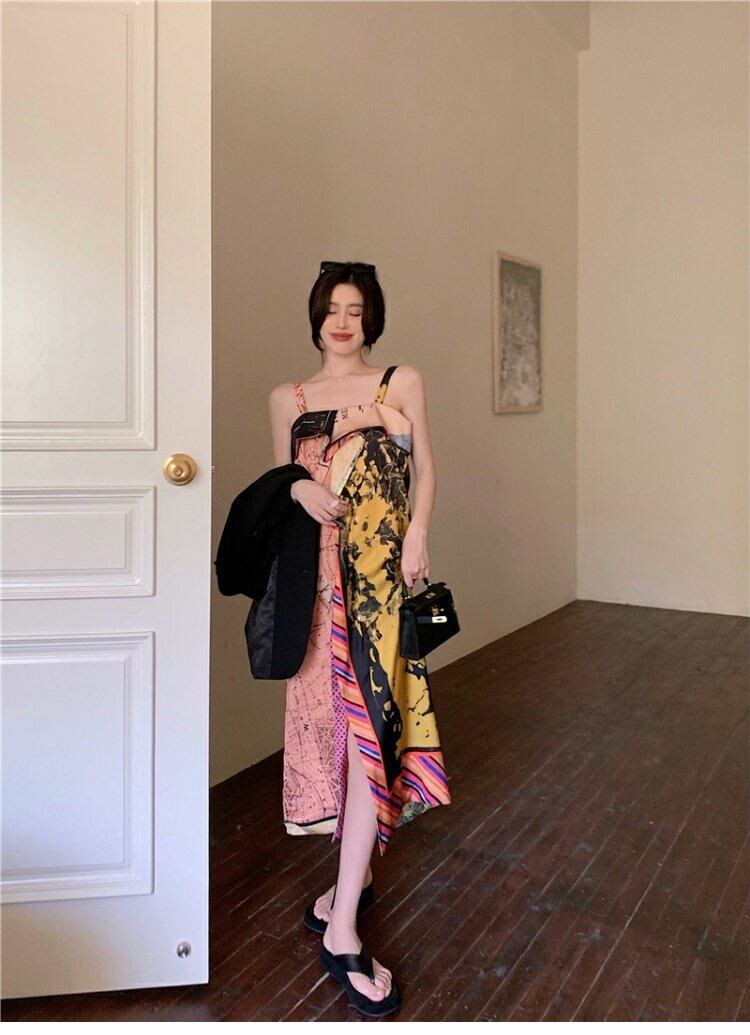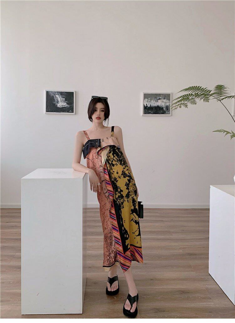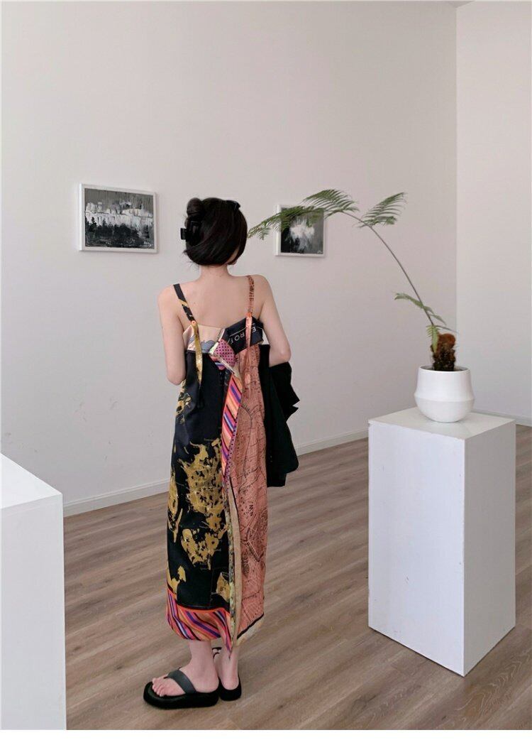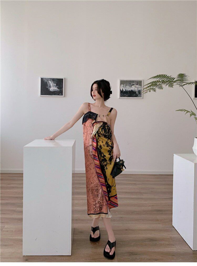 レディース夏服ロングスカート 夏物 シルキー サテン ワンピース コーデ marchs6721089389103