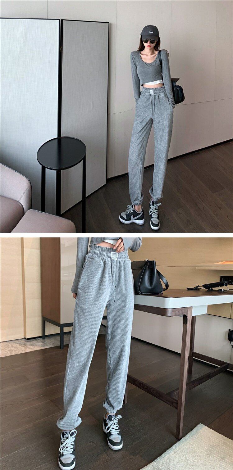 スプリングハイウェストルーズパンツ グレーレディース 春物 ウエスト コーデ marchs6743956008702