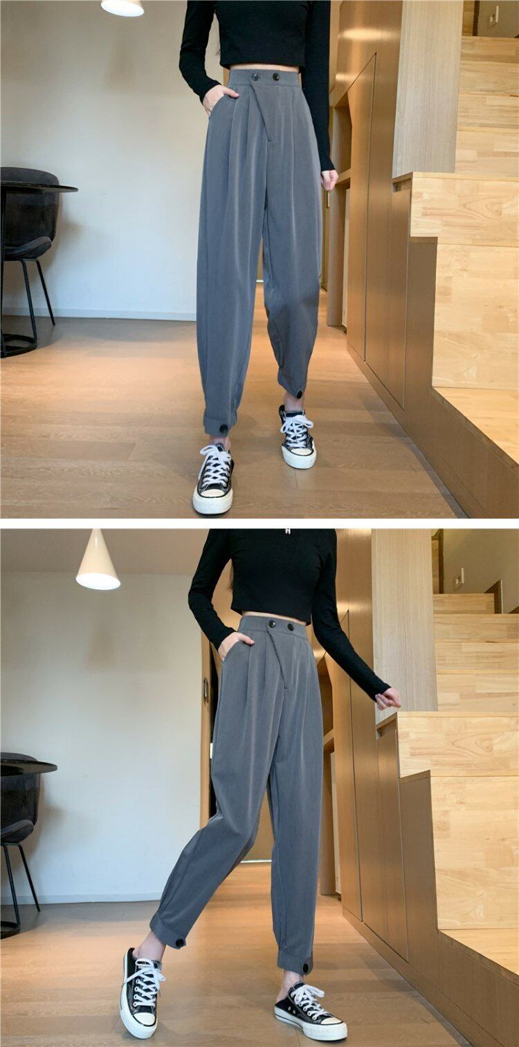 夏服スタイル韓国ファッションハイウェストウェストカジュアルパンツ 夏物 ウエスト コーデ marchs6759614326971