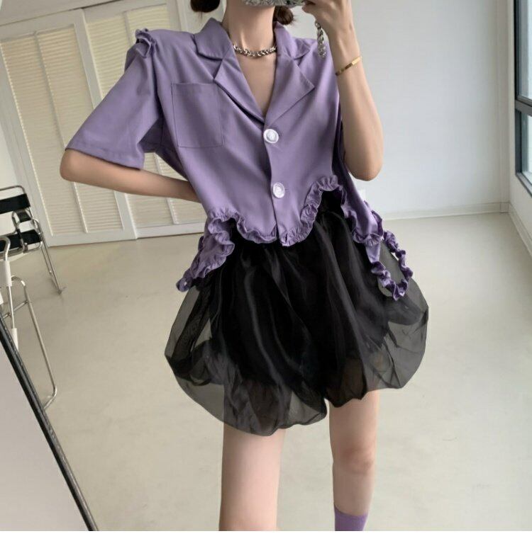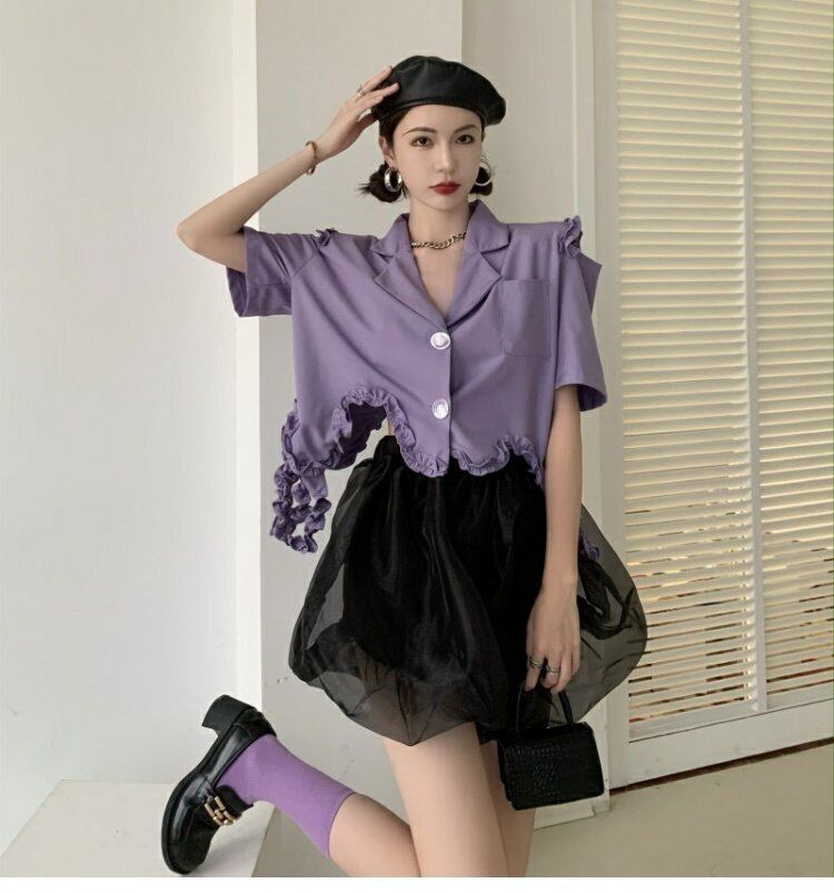 レディース夏服レースジャケット 夏物 ショーツ ブルマー パープル コーデ marchs6795656136953