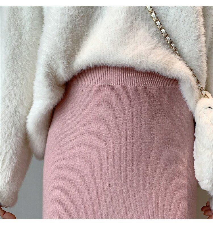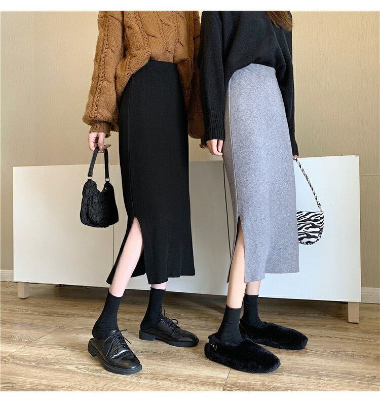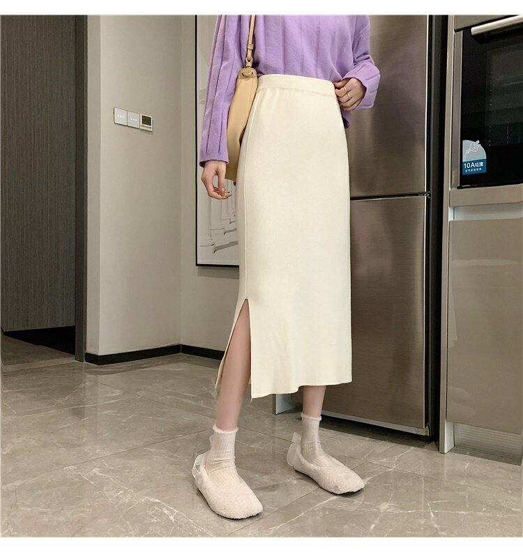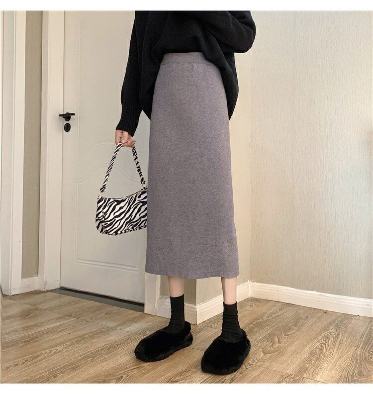 スプリングニットスカート レディースハイウェストウェストAラインブラック 春物 ウエスト ミドル丈 コーデ marchs6761341781441