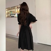 夏服スカート スタイルスタンダード自然派ブラックAラインワンピースレディース レトロ 夏物 コーデ marchs6747145070486
