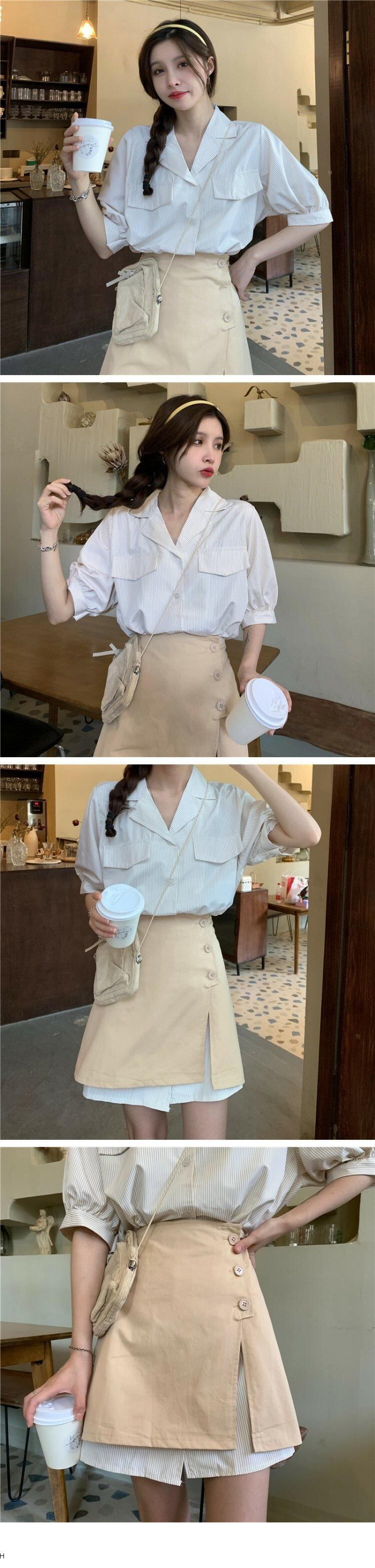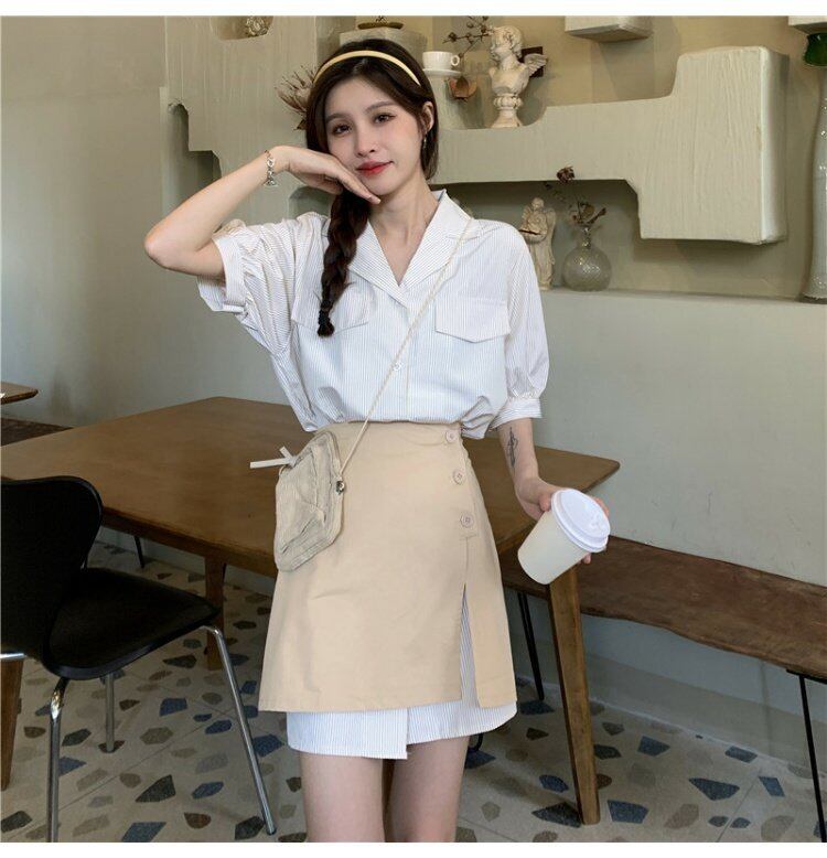 ストライプシャツ スカート レディース夏服 夏物 コーデ marchs6759449386623