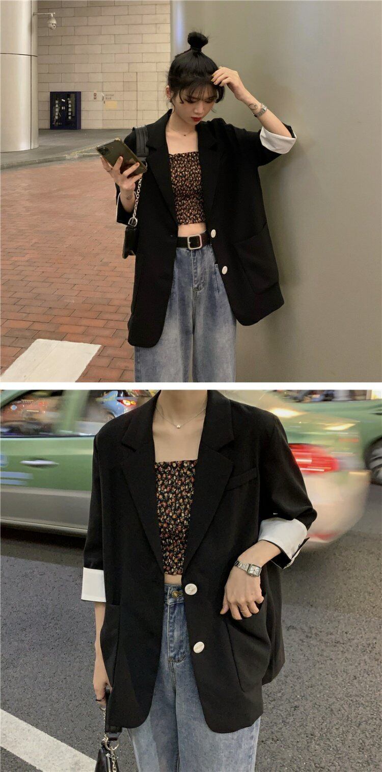ジャケット 夏服韓国ファッションルーズ薄手カジュアル 夏物 スタイル ミドル丈 コーデ marchs6724090362046