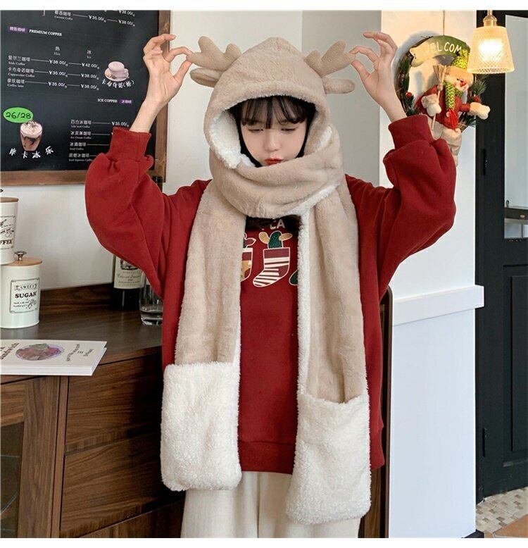 スカーフ グローブ 秋物ウィンターコーラルフード 帽子 大人ガーリー スウィート キュート カジュアル オータム 冬物 コーデ marchs6778552118561