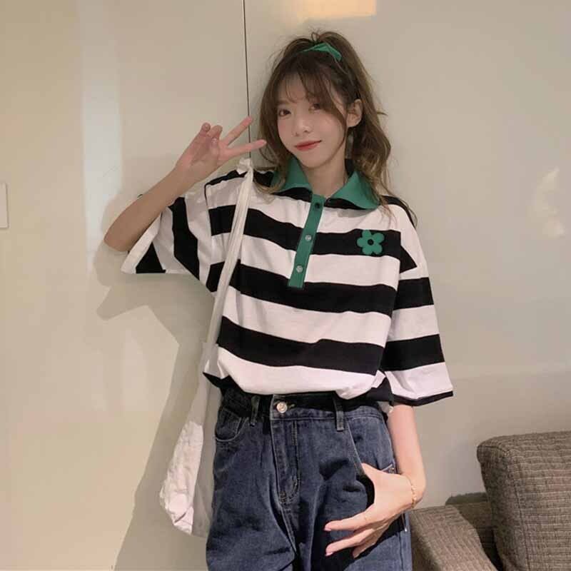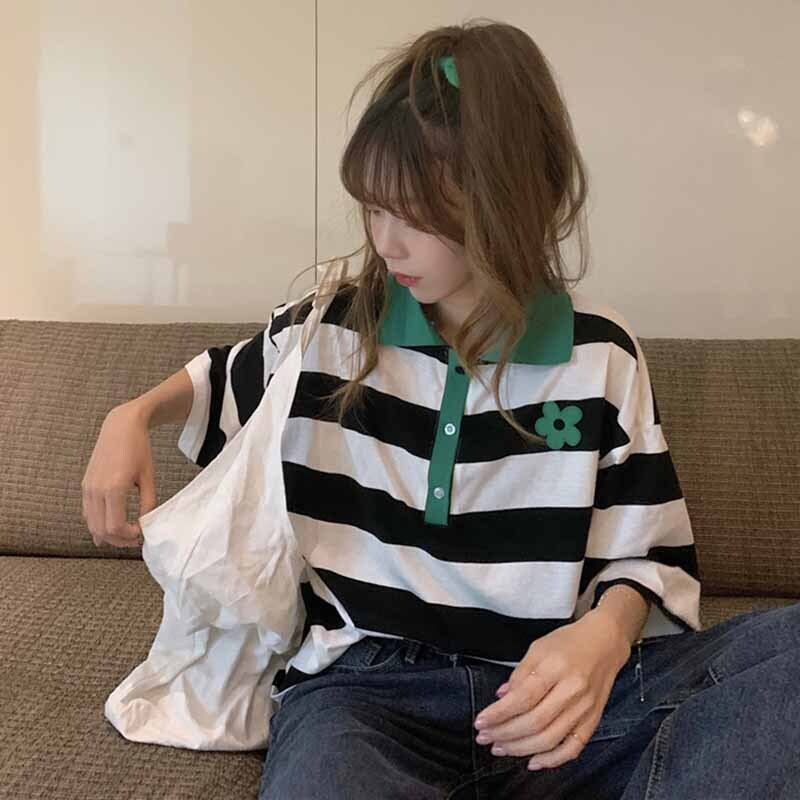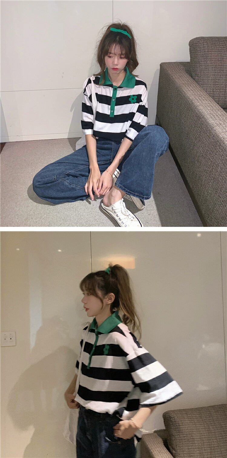 スタイルカラーTシャツシャツ レディース夏服ルーズストライプゆったり 夏物 コーデ marchs6791464352837