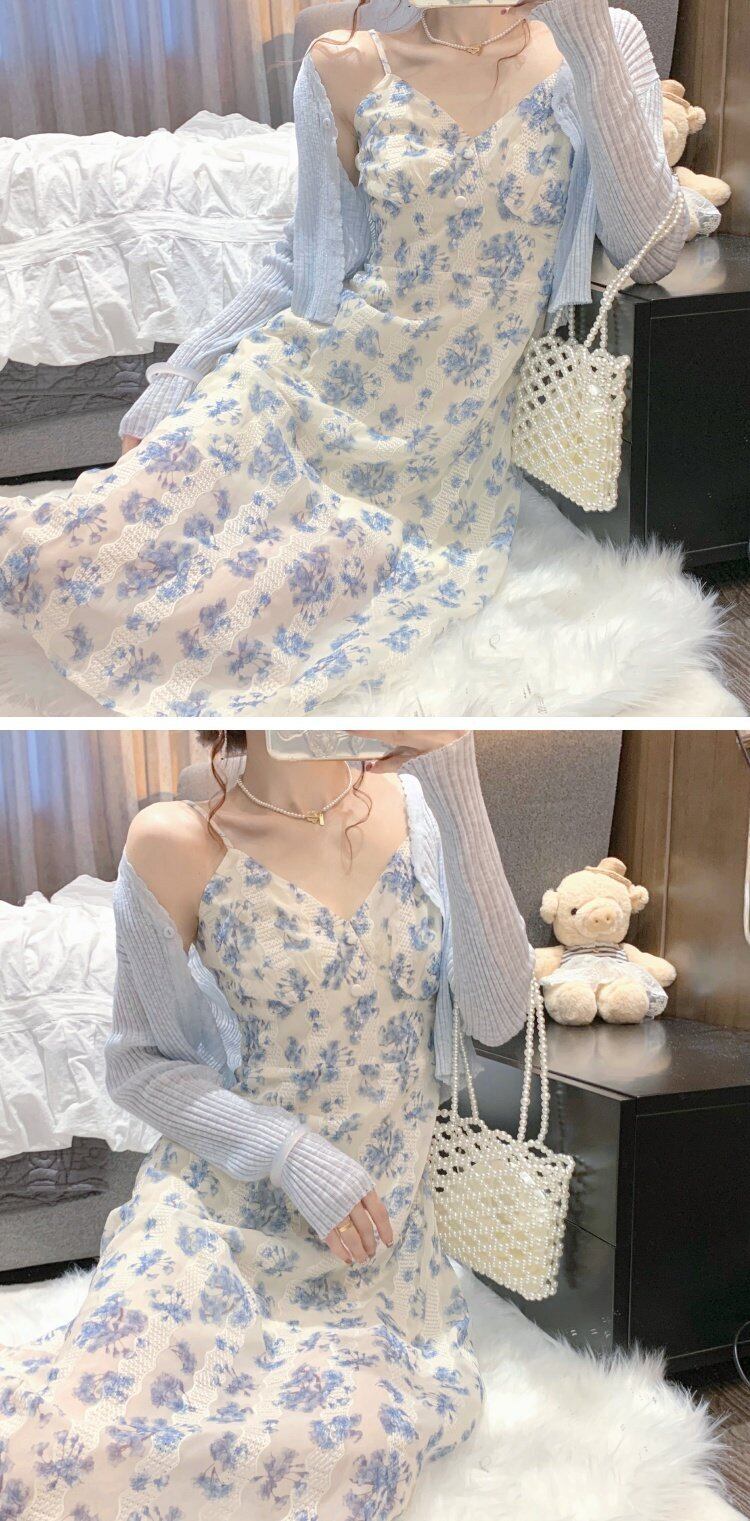 シフォンフローラルワンピースレディース夏服ウェストVネックロングスカート 大人ガーリー スウィート キュート カジュアル 夏物 花柄 ウエスト コーデ marchs6723955831381