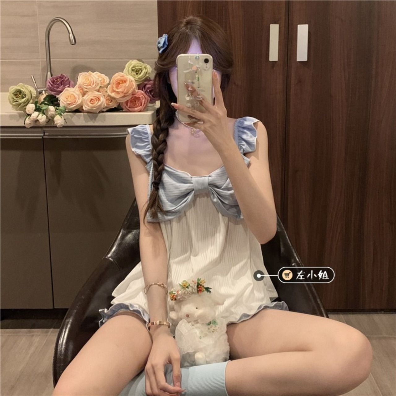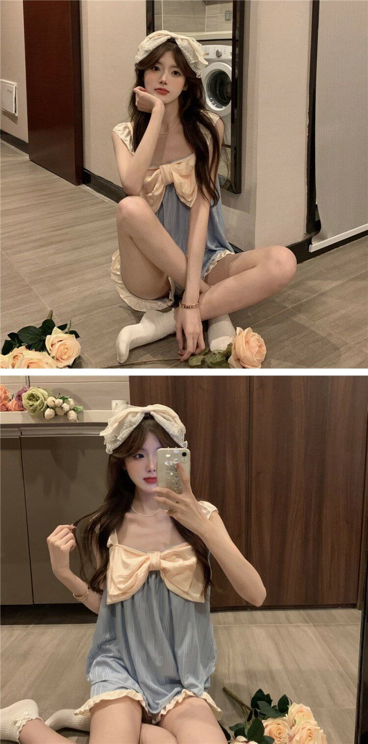 リボンショーツ レディースパジャマ夏服薄手スタイル上下セット 大人ガーリー スウィート キュート カジュアル 夏物 コーデ marchs6739669495881