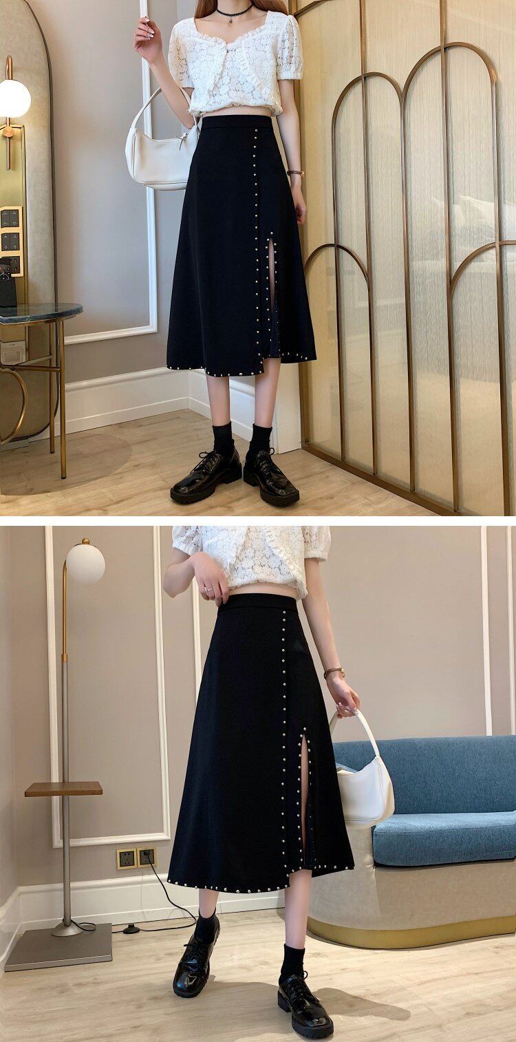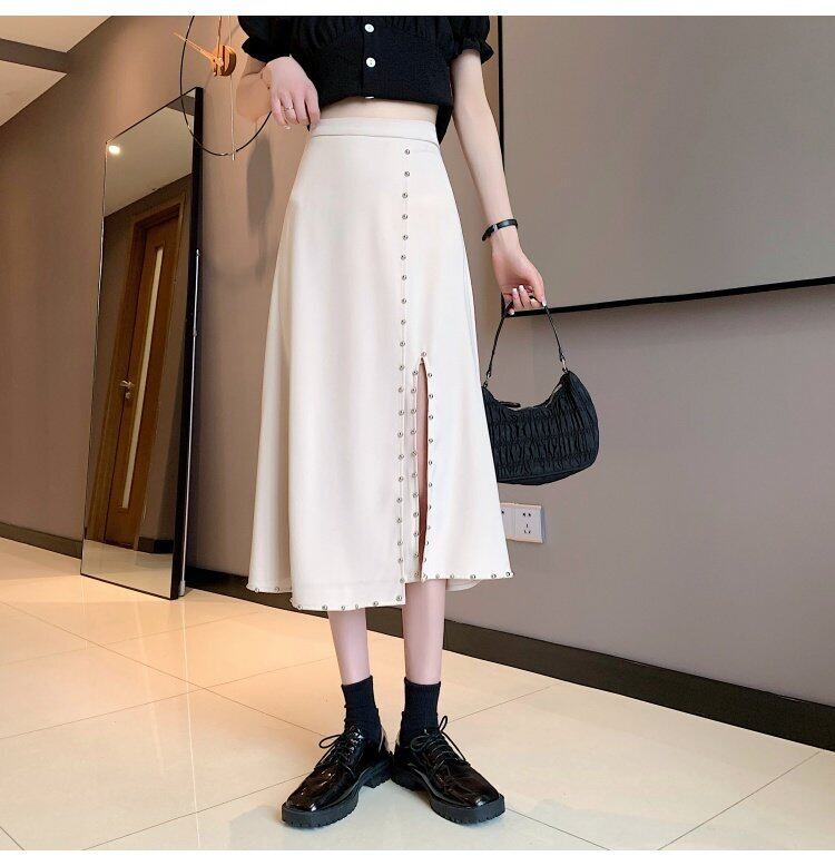 夏服韓国ファッションハイウェストウェストスリムスカート レディースAライン 夏物 スタイル ウエスト ミドル丈 コーデ marchs672459414923