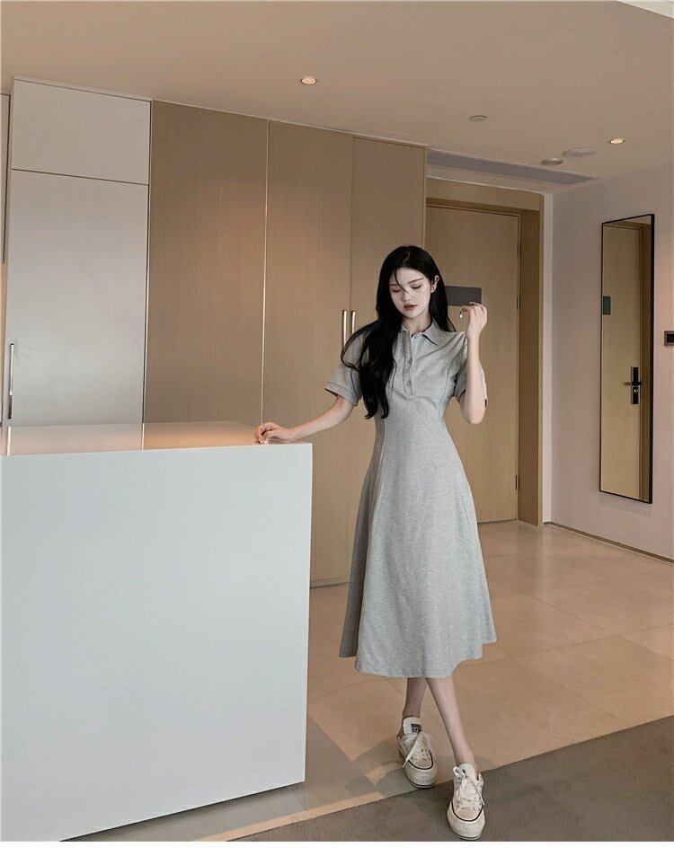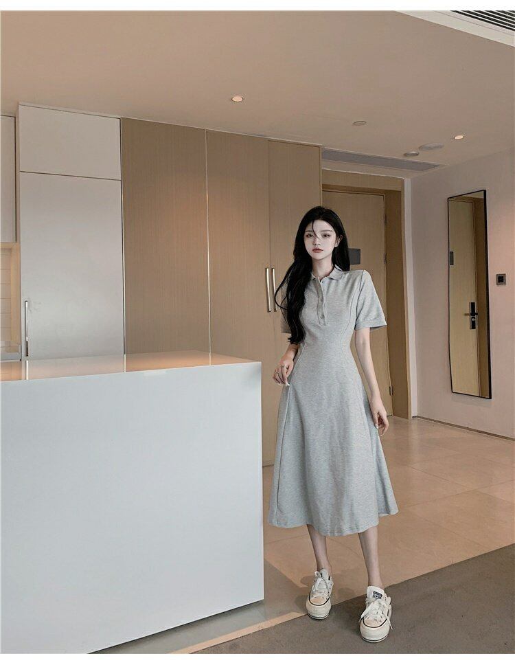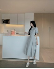 夏服カラーウェスト薄手Aラインスカート ロングワンピースレディース 夏物 ウエスト コーデ marchs6797115758683