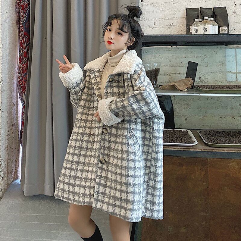 コート レディースウィンター韓国ファッションルーズ格子柄 冬物 スタイル ミドル丈 コーデ marchs6744466496763