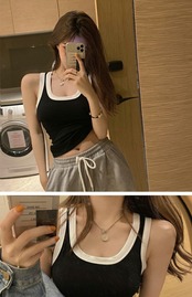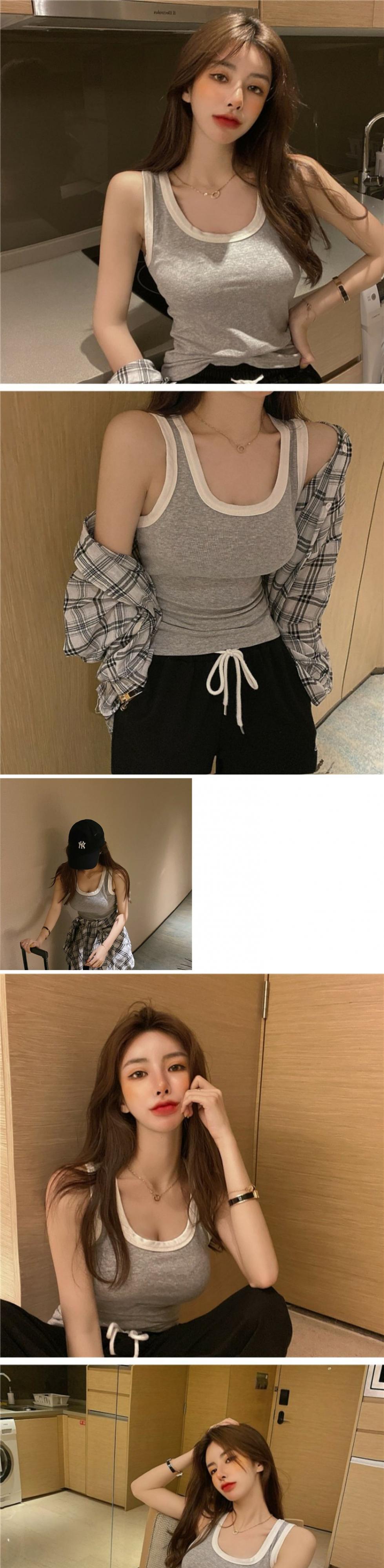 夏服韓国ファッションカラースリムトップス 夏物 スタイル コーデ marchs6797491651884