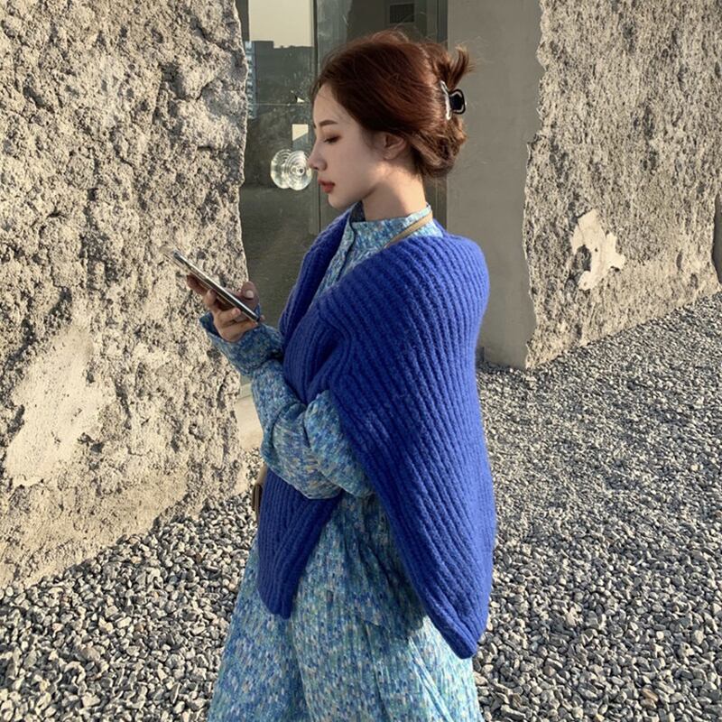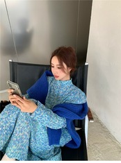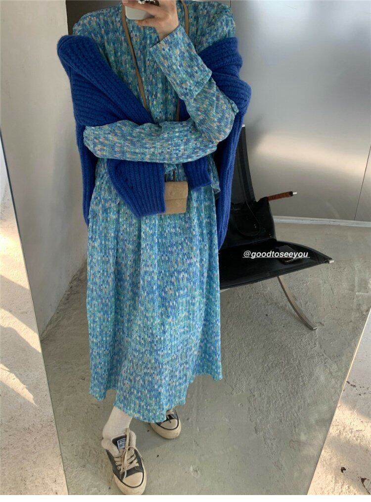 スタイルレディースウィンターブルーセーター シフォンフローラルワンピーストレンド 冬物 花柄 コーデ marchs6766598286074